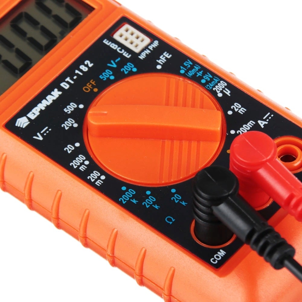 Мультиметр Ермак DT-182 портативный, цифровой, 1000В, 10А, 200000-2МОм, 100×50×23мм / инструменты
