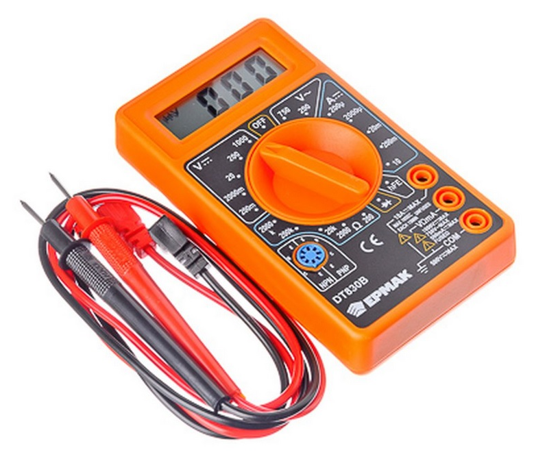 Мультиметр Ермак DT-830В портативный, цифровой, 1000В, 10А, 2000кОм, 100мкВ, 126×70×28мм / инструменты