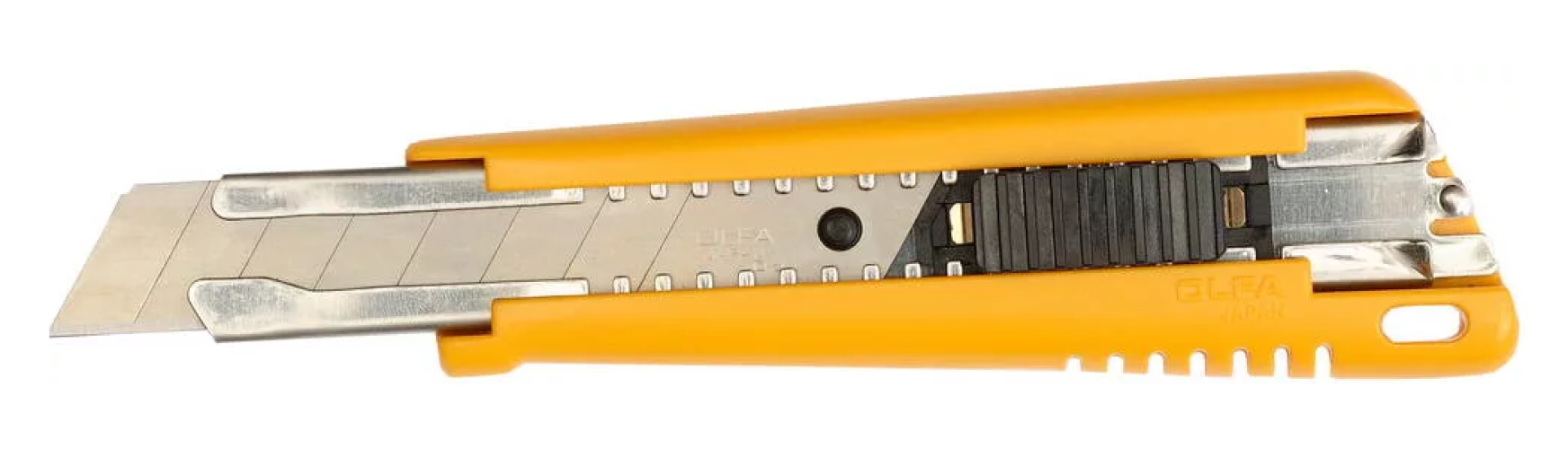 Нож строительный OLFA / Олфа с автофиксатором и сегментным выдвижным лезвием, из металла, желтый, 81мм / инструменты