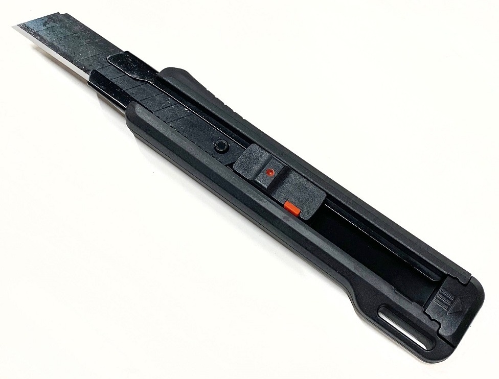 Нож с выдвижным сегментом используется для разрезания бумаги, картона, напольных покрытий и других материалов. Для удобства фиксации лезвия имеется круглый фиксатор с затяжкой усилия.