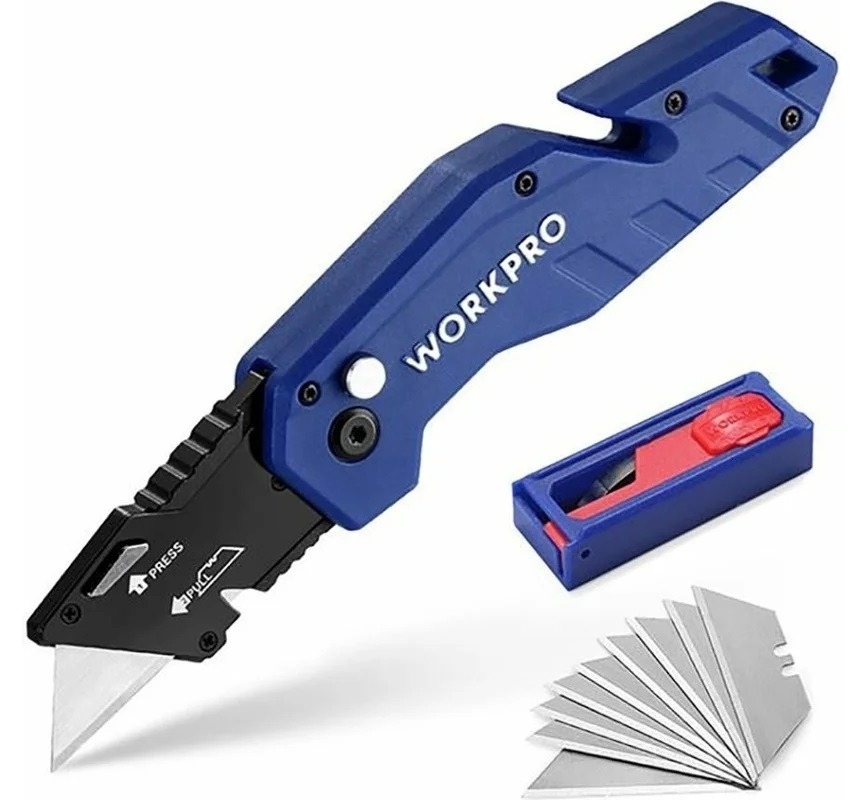 Нож строительный WORKPRO / Воркпро складной с трапециевидным лезвием, из стали SK5, синий, 160мм / инструментыАрт. 10043В наличии1 070 ₽/шт