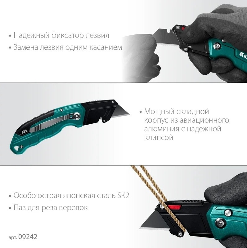 Нож KRAFTOOL демонстрирует отличную балансировку и удобство при работе в труднодоступных зонах. Он станет обязательным элементом оснащения для профессионалов и домашних мастеров. Сделайте выбор в пользу практичности и функциональности!