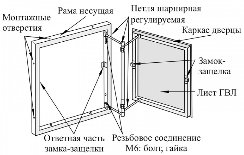 — Заполнение дверцы — гипсоволокнистый лист KNAUF 12,5 мм.