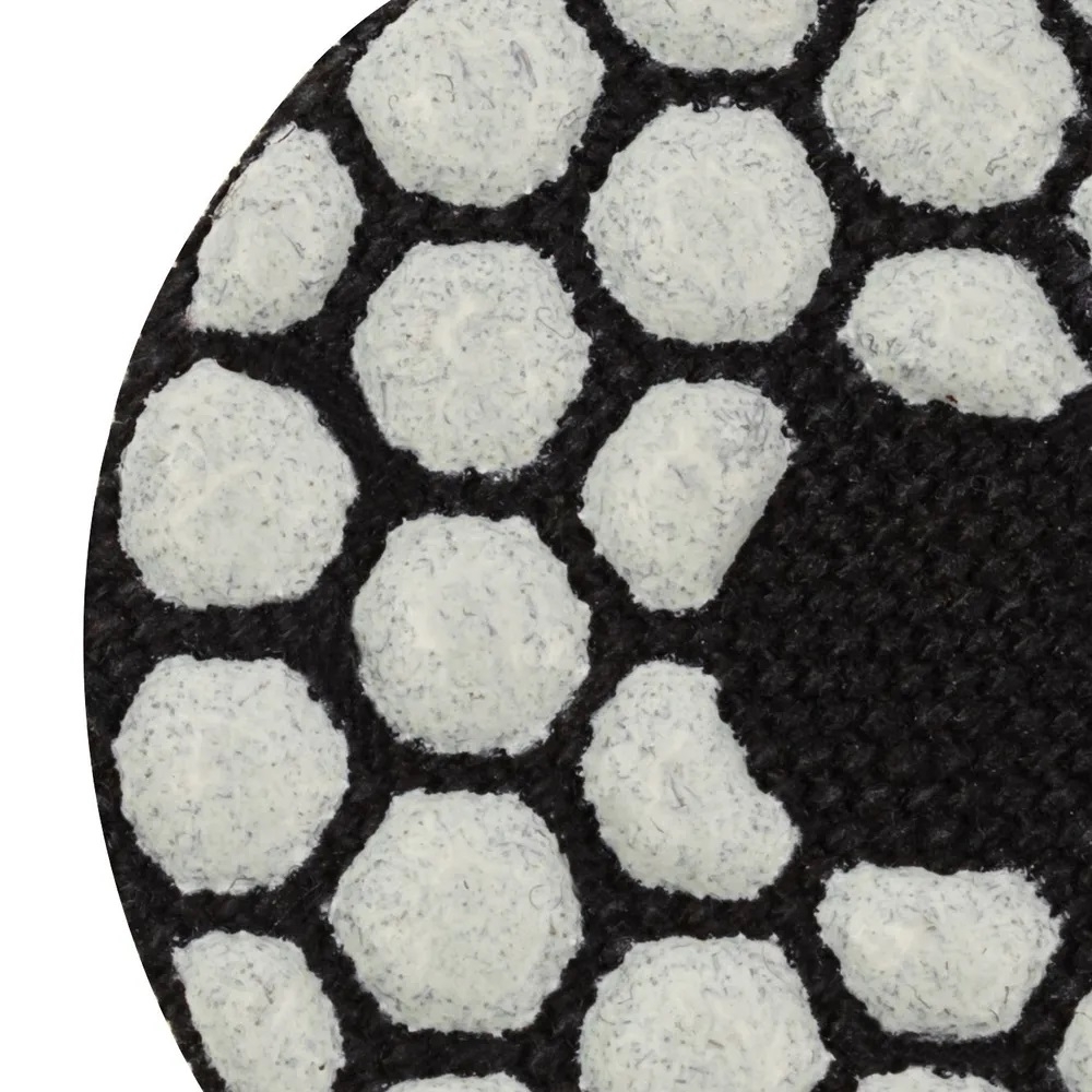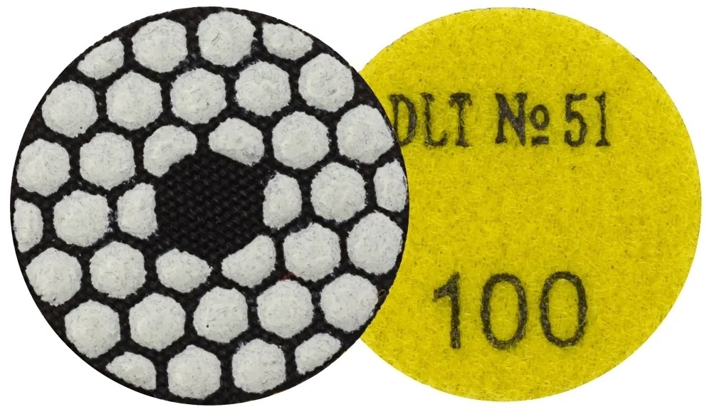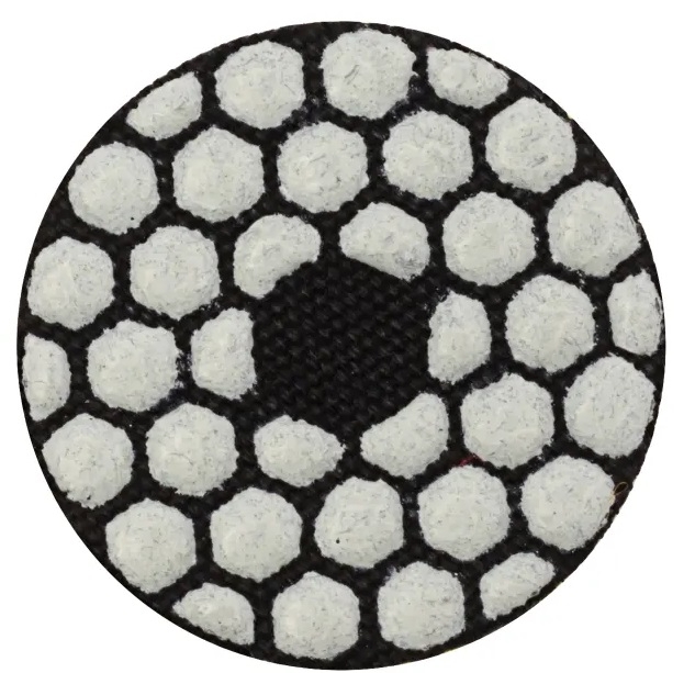 Алмазный гибкий шлифовальный круг DLT № 51 применяется для сухой и мокрой шлифовки и полировки изделий из искусственного и натурального камня, керамики, стекла. Круг изготовлен на гибкой основе, имеет алмазное напыление толщиной 1.5 мм в форме «сот» что позволяет своевременно выводить образуемый шлак из зоны полировки тем самым не перегреваясь эффективно работать на сухую, крепится при помощи липучки. Круги отлично подходят для снятия фаски и шлифовки торцов керамогранита и керамической плитки. За счет специальной формы и диаметра 50 мм позволит использовать в труднодоступных местах.