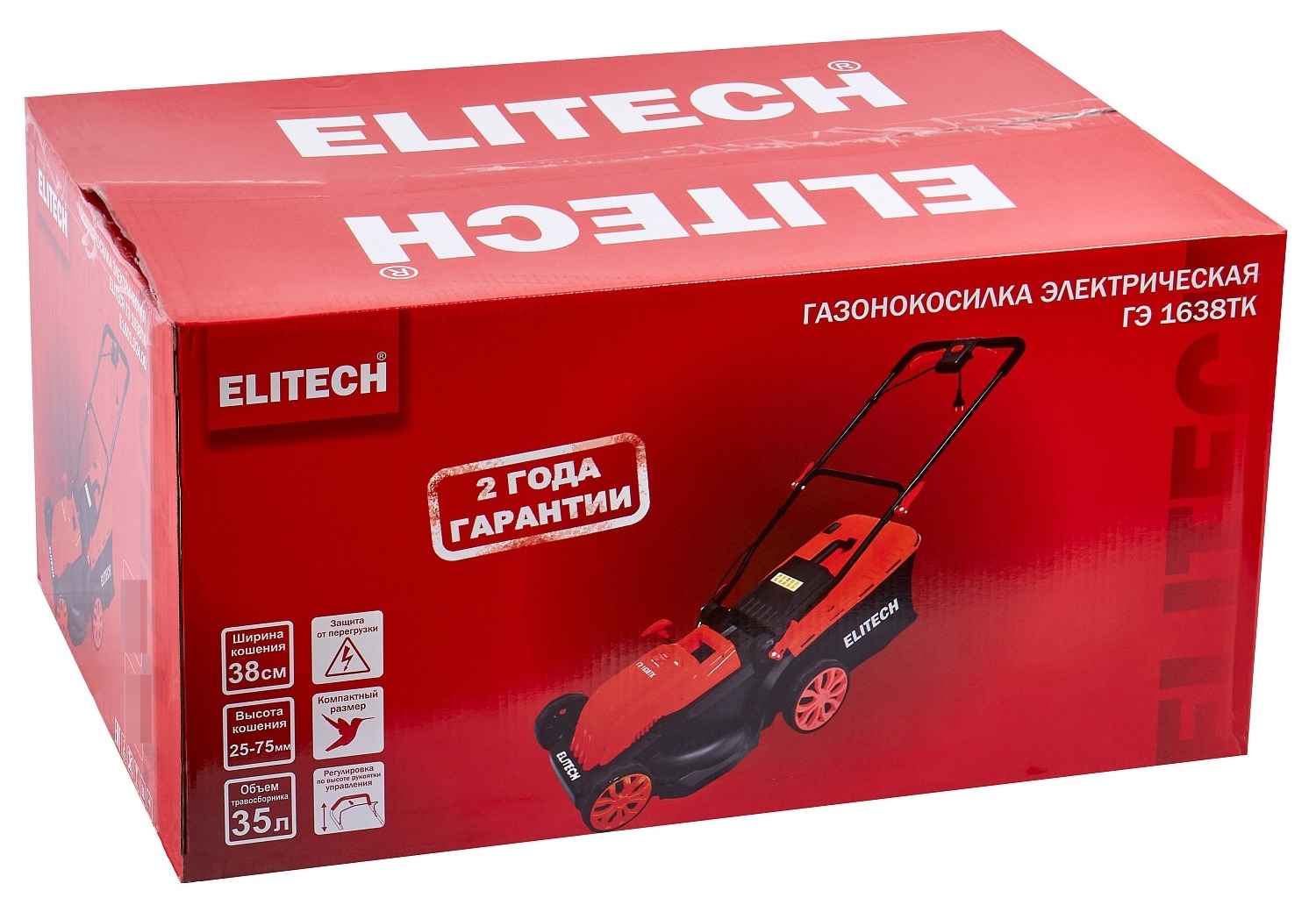 Мощность двигателя косилки Elitech в 1600 Вт гарантирует высокую производительность, а скорость вращения ножа достигает 3300 оборотов в минуту. Агрегат отличается легкостью и маневренностью по сравнению с бензиновыми и аккумуляторными аналогами.