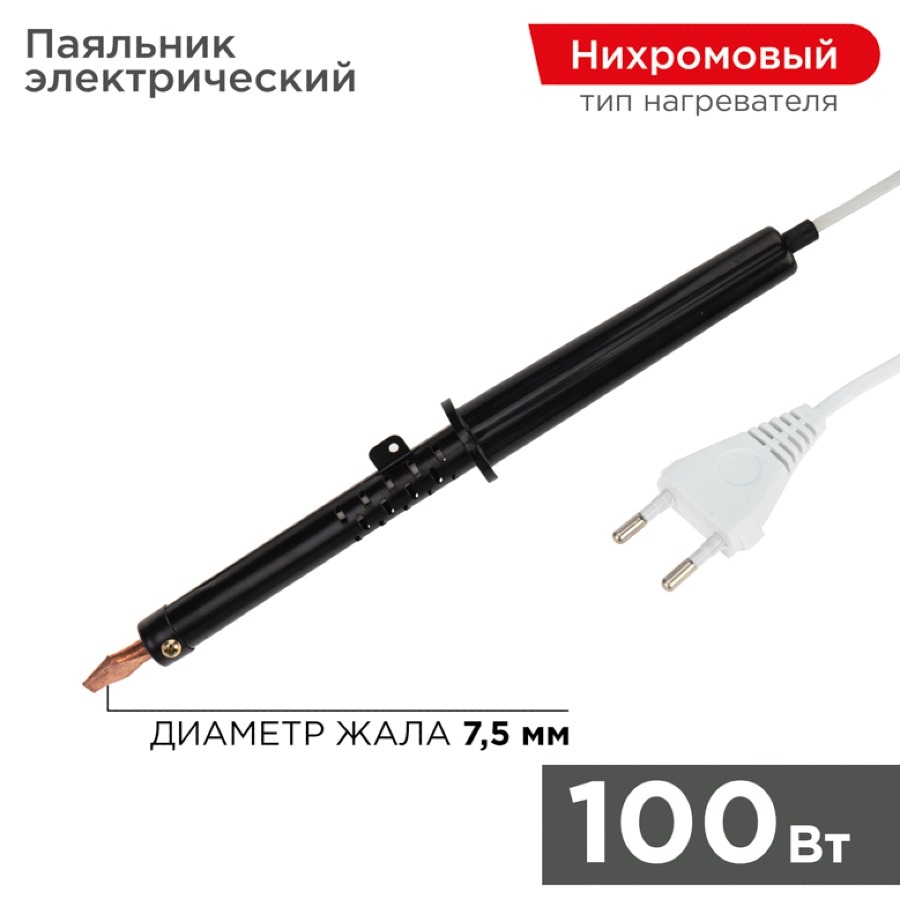 Паяльник электрический REXANT / Рексант ПП 220В ЭПСН с клином и пластиковой рукояткой, 100Вт, нагрев за 480с, 12-0291-1 / электроинструмент