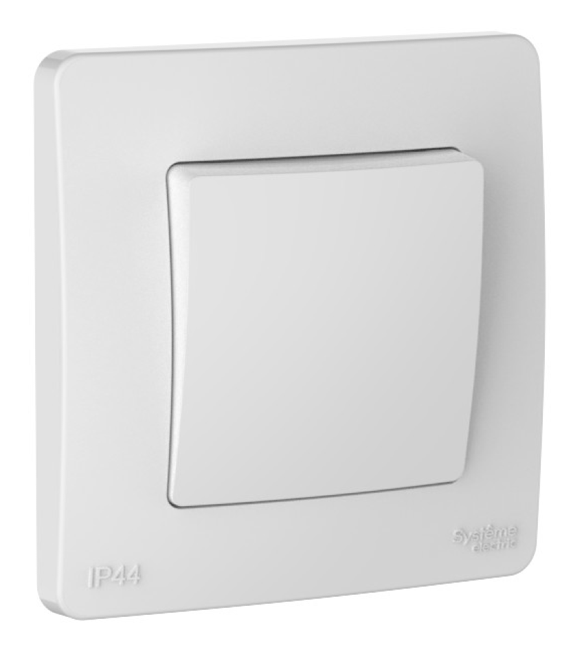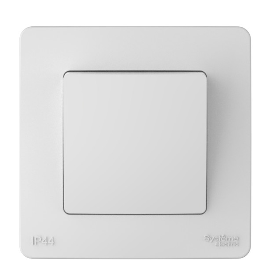 Одноклавишный выключатель Systeme Electric представлен в белом цвете, он идеально впишется в любой интерьер.