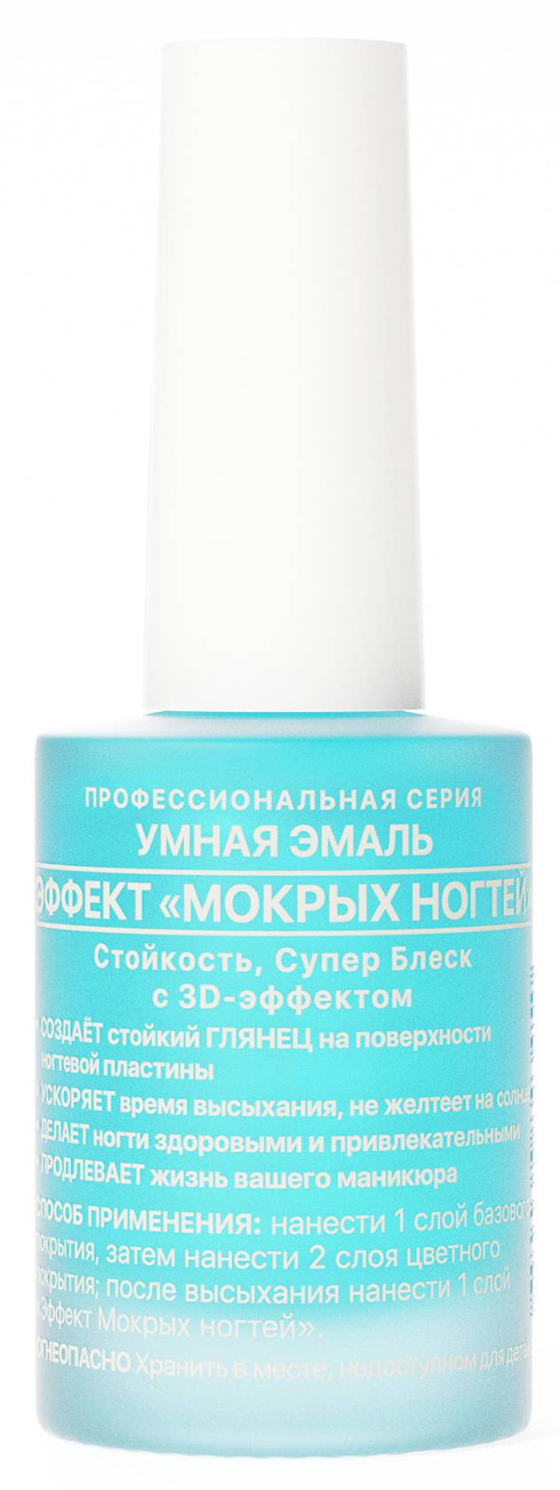 Умная Эмаль Лак эффект «мокрых ногтей» прозрачный со светло-синим оттенком создаёт стойкий глянец на поверхности ногтевой пластины, ускоряет время высыхания, не желтеет на солнце, делает ногти здоровыми и привлекательными, продлевает жизнь вашего маникюра.