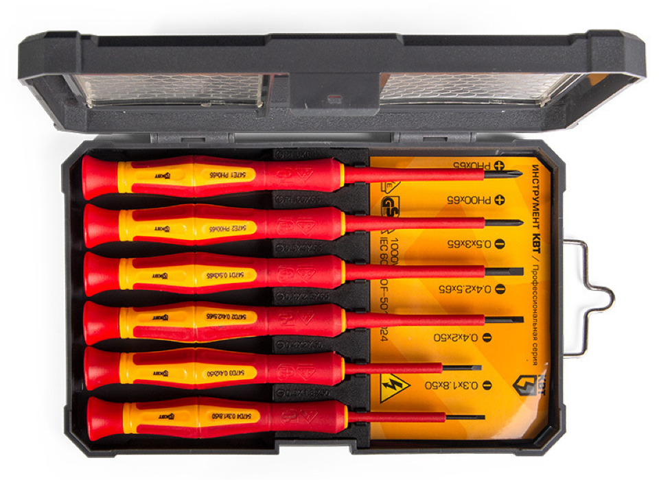 - Набор отверток КВТ Профи НИО-06 мини, для работ под напряжением до 1000 В, из стали, 6 предметов - 1шт.