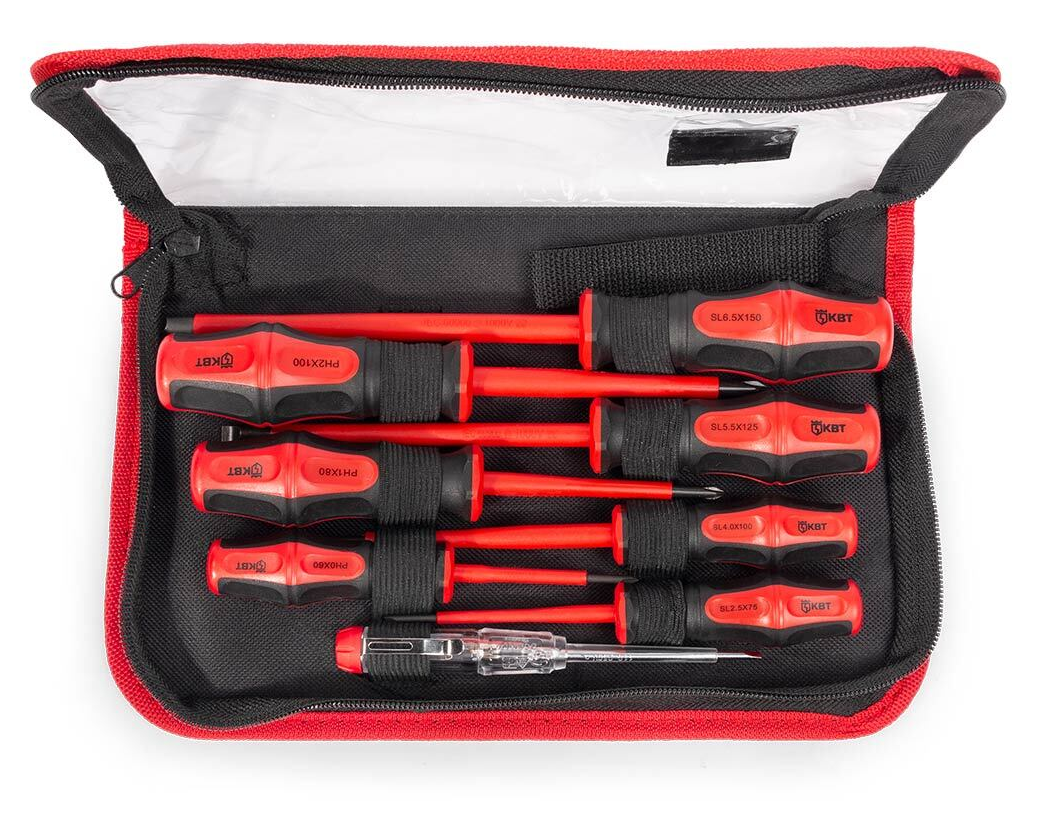 - Набор отверток КВТ Профи НИО-08, для работ под напряжением до 1000 В, из стали, 8 предметов - 1шт.