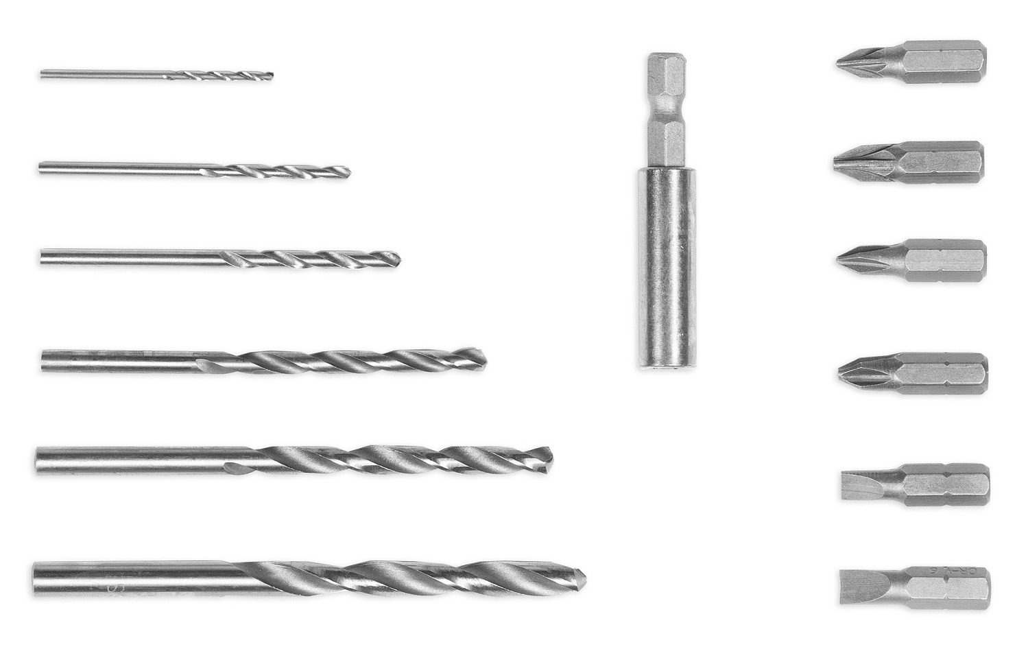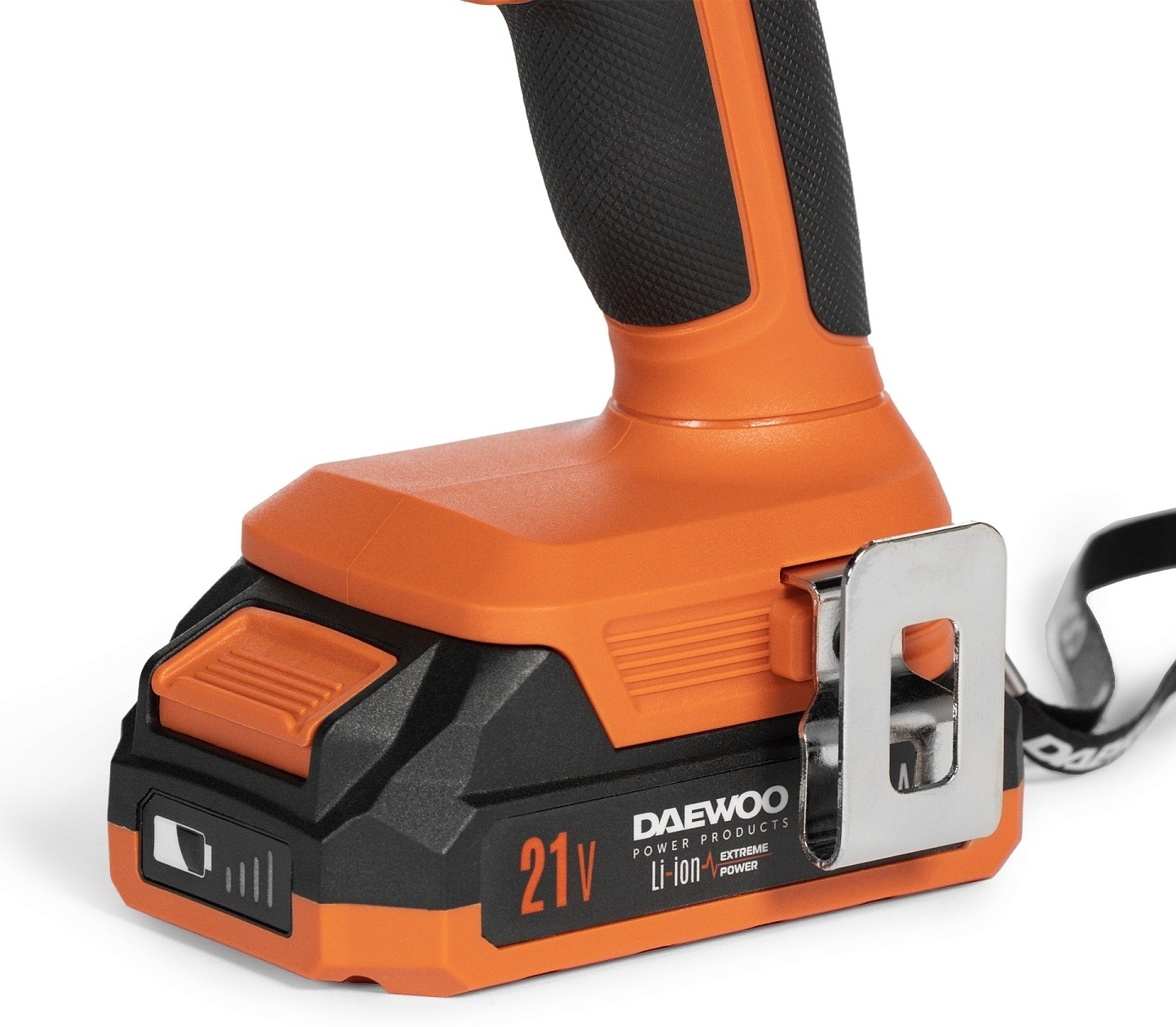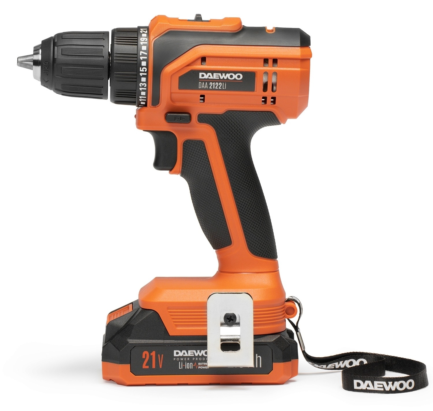 инструментами и батареями DAEWOO линейки 21В. Быстрозажимной патрон. Обеспечивает быструю установку оснастки диаметром хвостовика 0,8-10 мм и надежную ее фиксацию во время работы. Два аккумулятора 21В/2 Ач и зарядное устройство уже в комплекте. Вы сразу можете приступить к работе. 12 аксессуаров в комплекте.