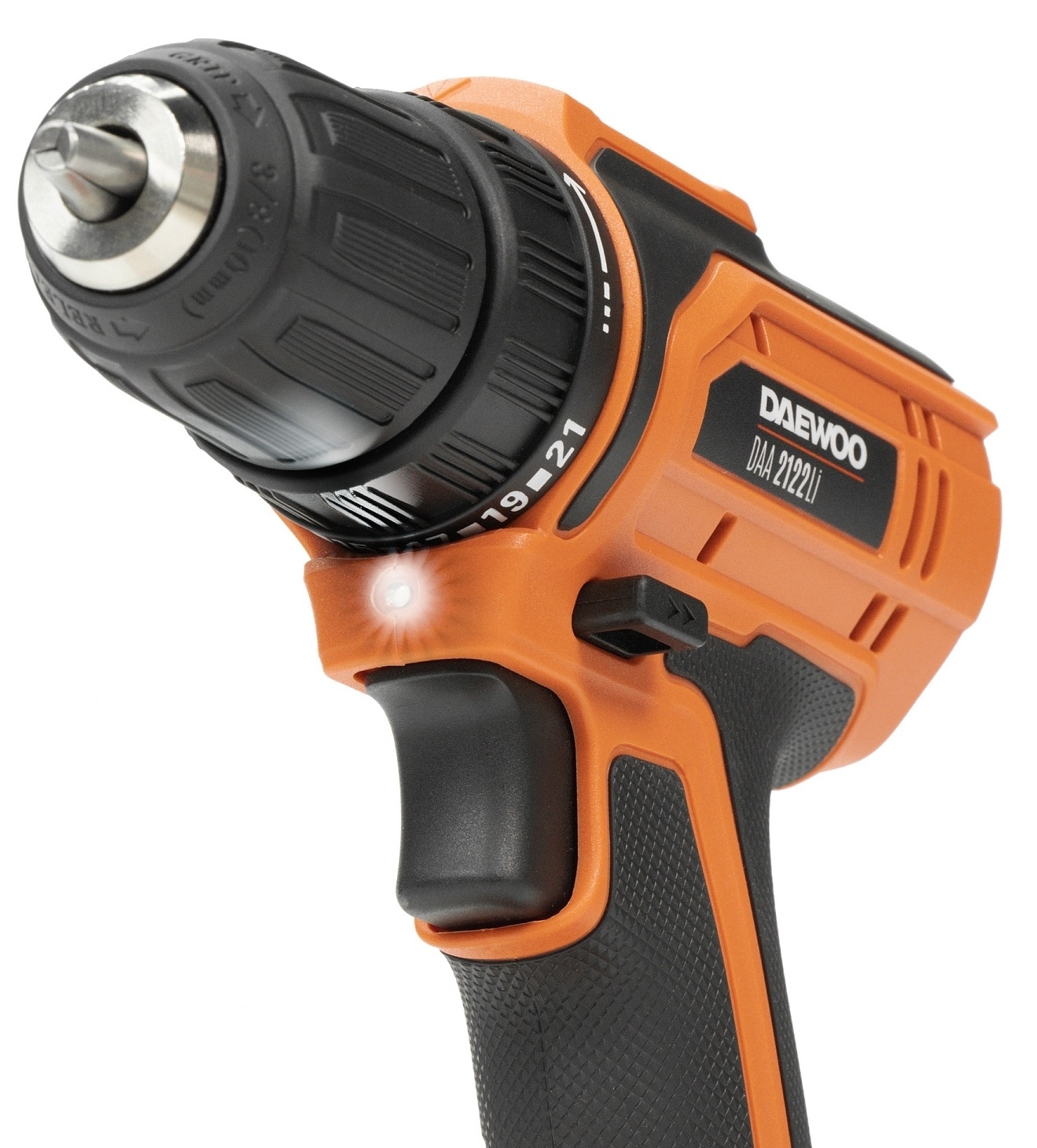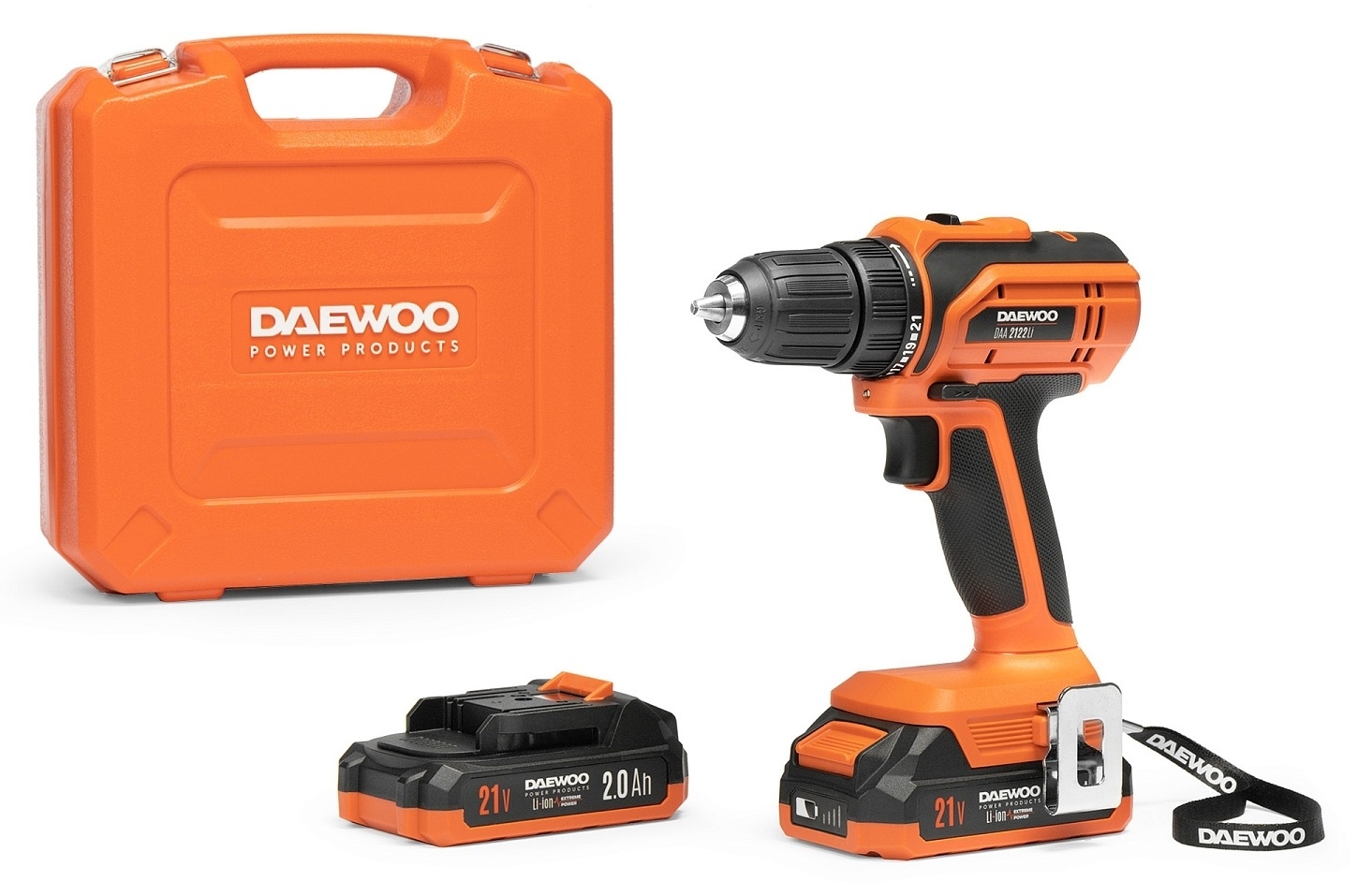 Дрель-шуруповерт аккумуляторная DAEWOO / Дэу DAA 2122Li с подсветкой, в кейсе, 21В, Li-Ion 2А/ч, 38Нм, 2 скорости / электроинструмент