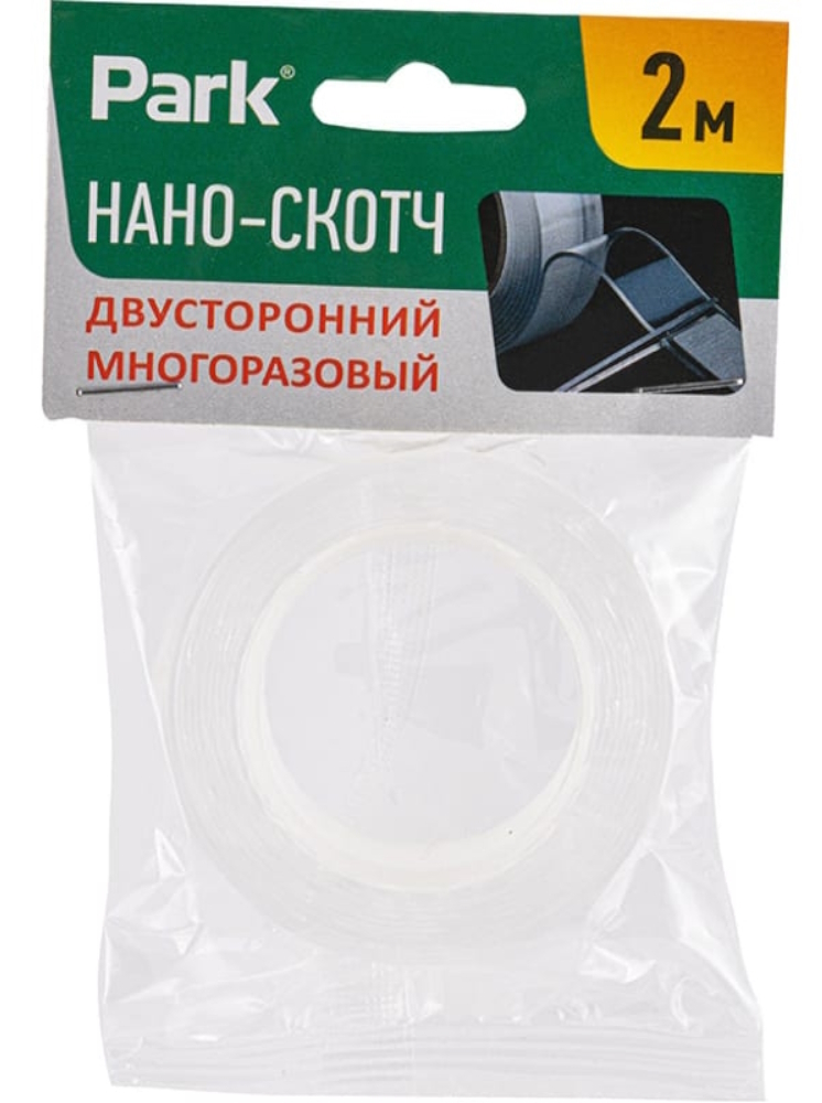 Клейкая лента PARK / Парк Нано-скотч двусторонняя многоразовая, акрил, прозрачная, ширина 20мм, длина 2м