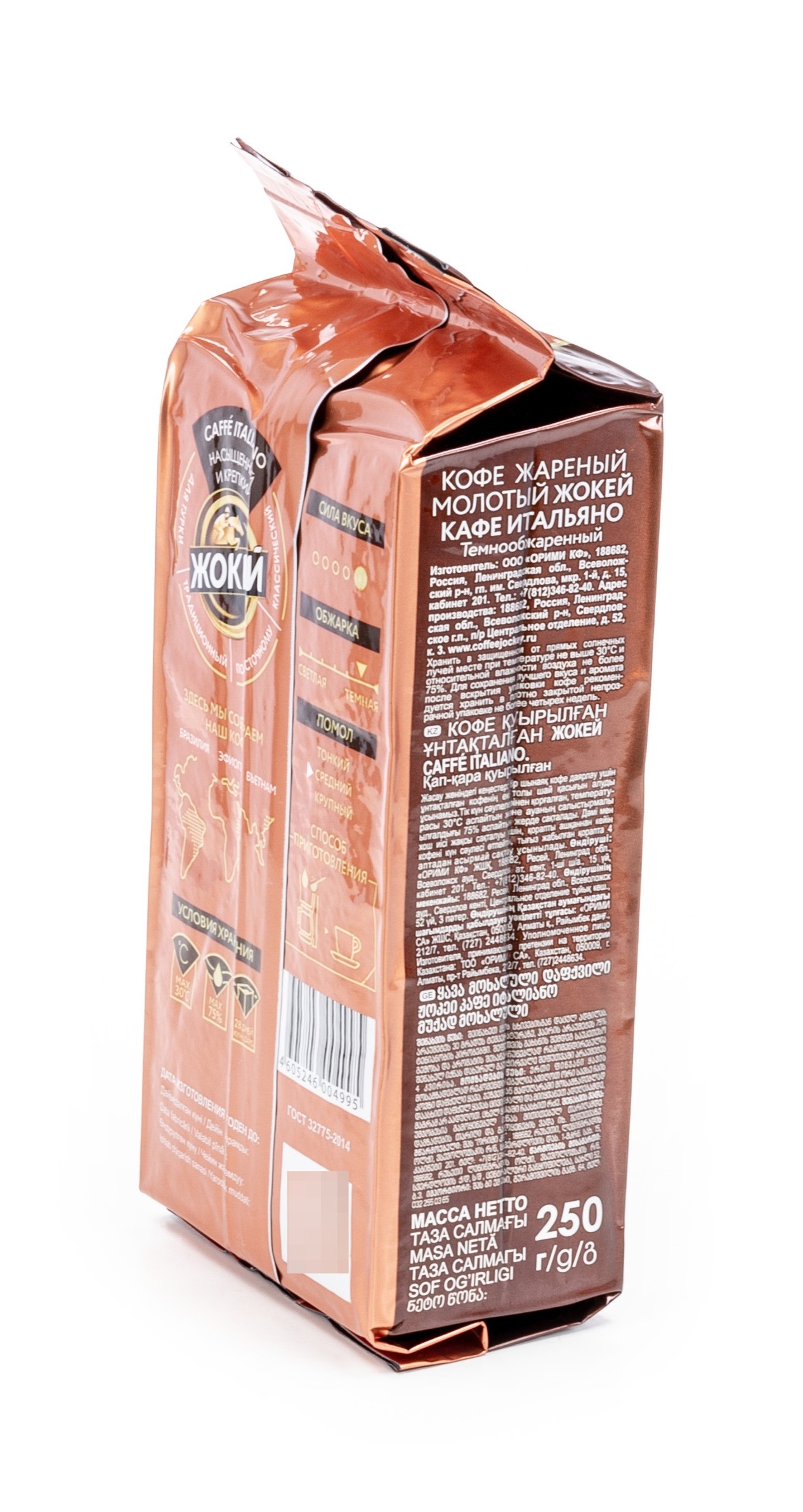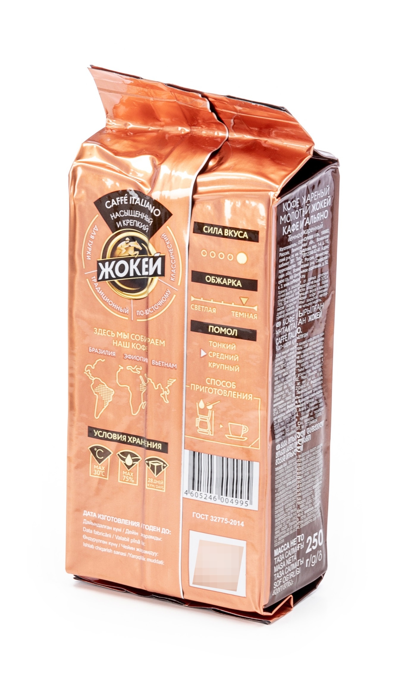 Кофе молотый Жокей Caffe Italiano №5 насыщенный и крепкий тонкий помол черный в упаковке 250г / арабика 100%