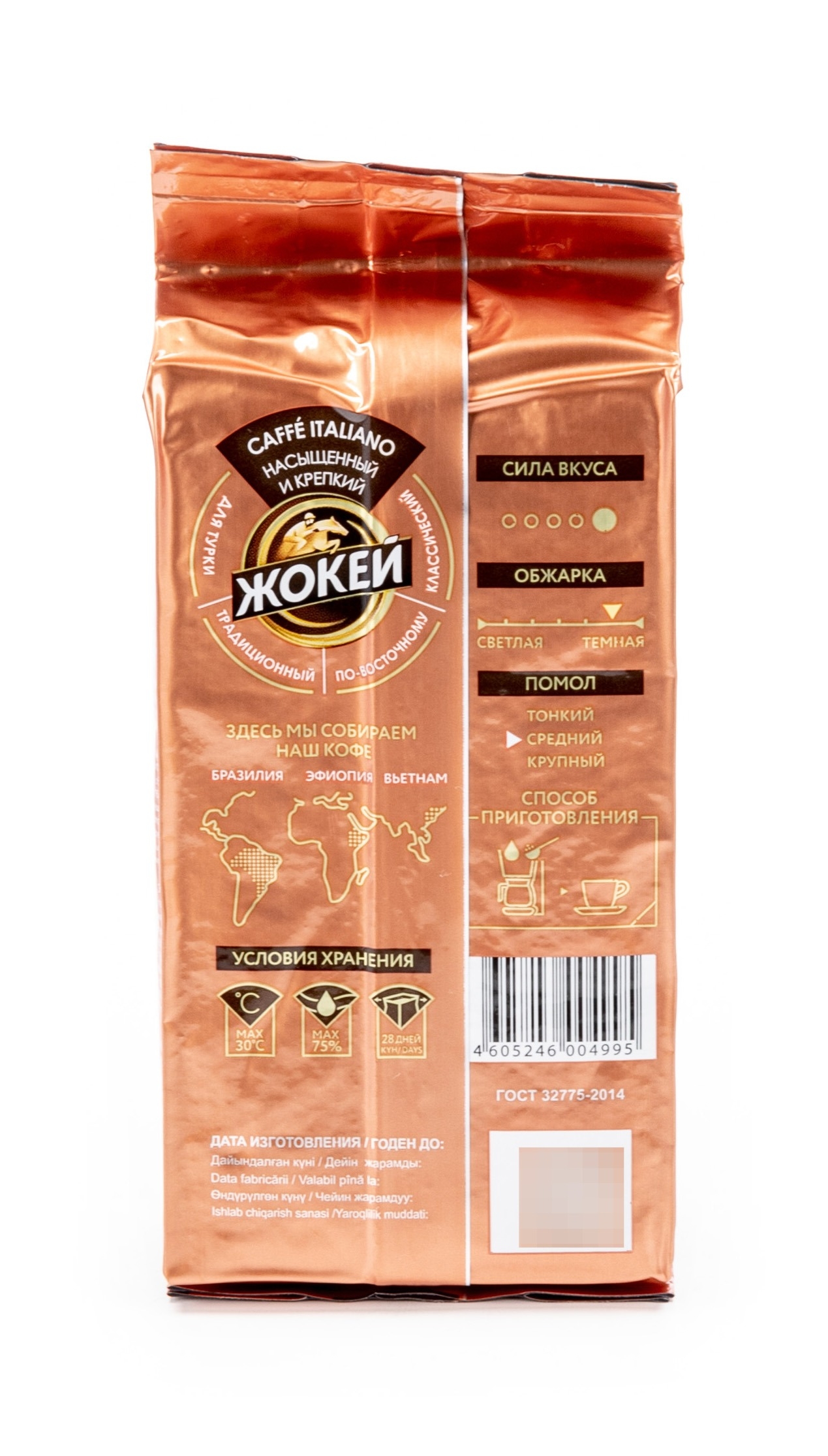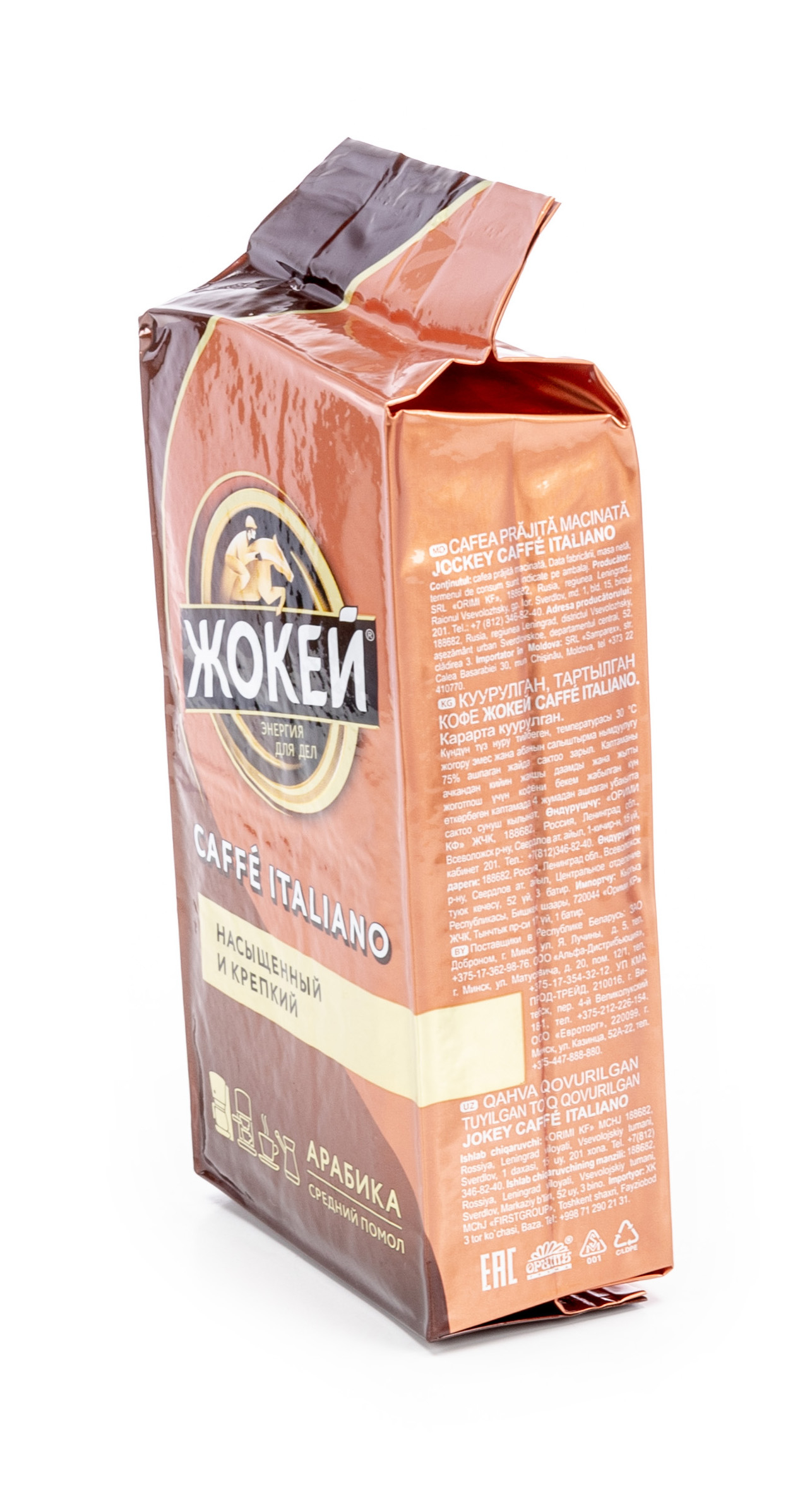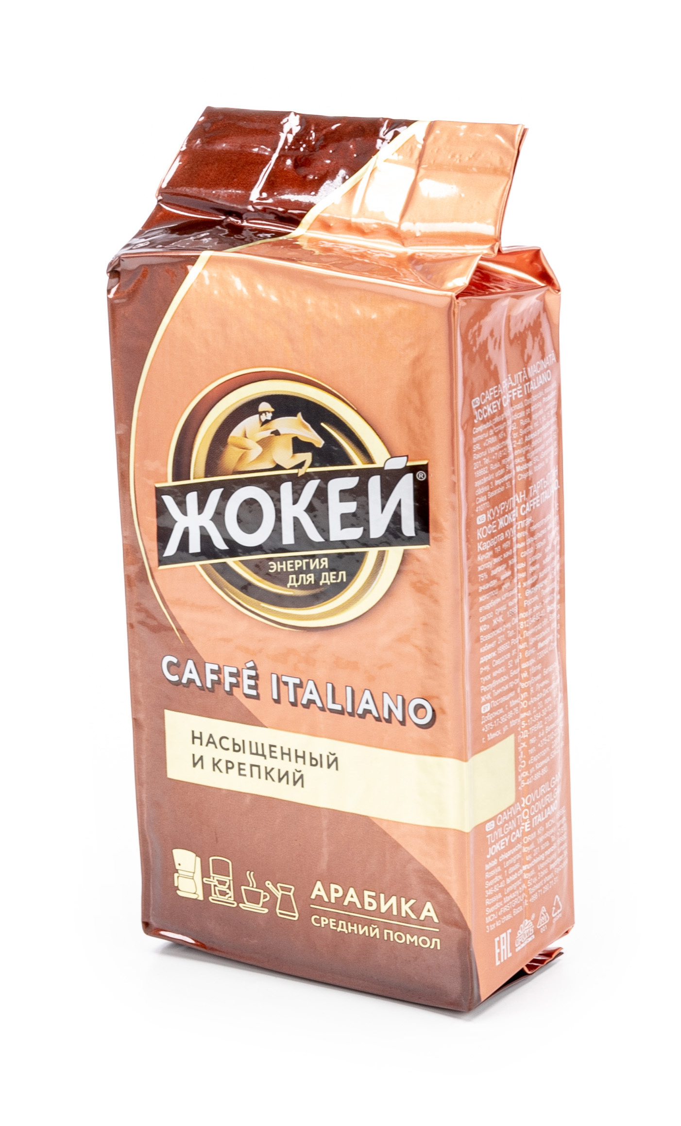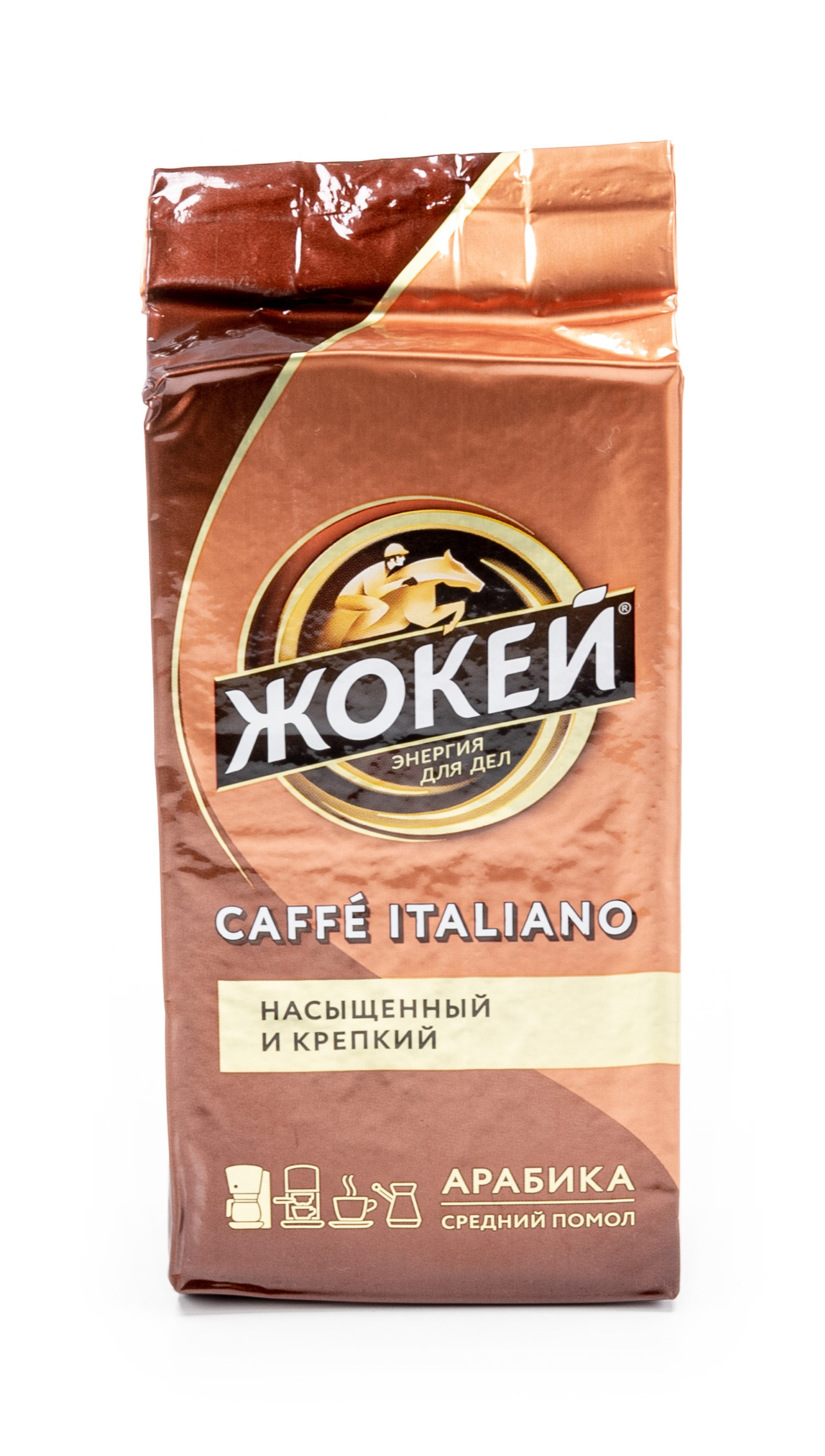 Молотый кофе Жокей Caffe Italiano № 5 — выбор кофейных гурманов, которые хотят сохранить первозданный кофейный вкус. Специальная темная обжарка придает кофе полный, многогранный аромат и позволяют ощутить все великолепие насыщенного, крепкого вкуса.