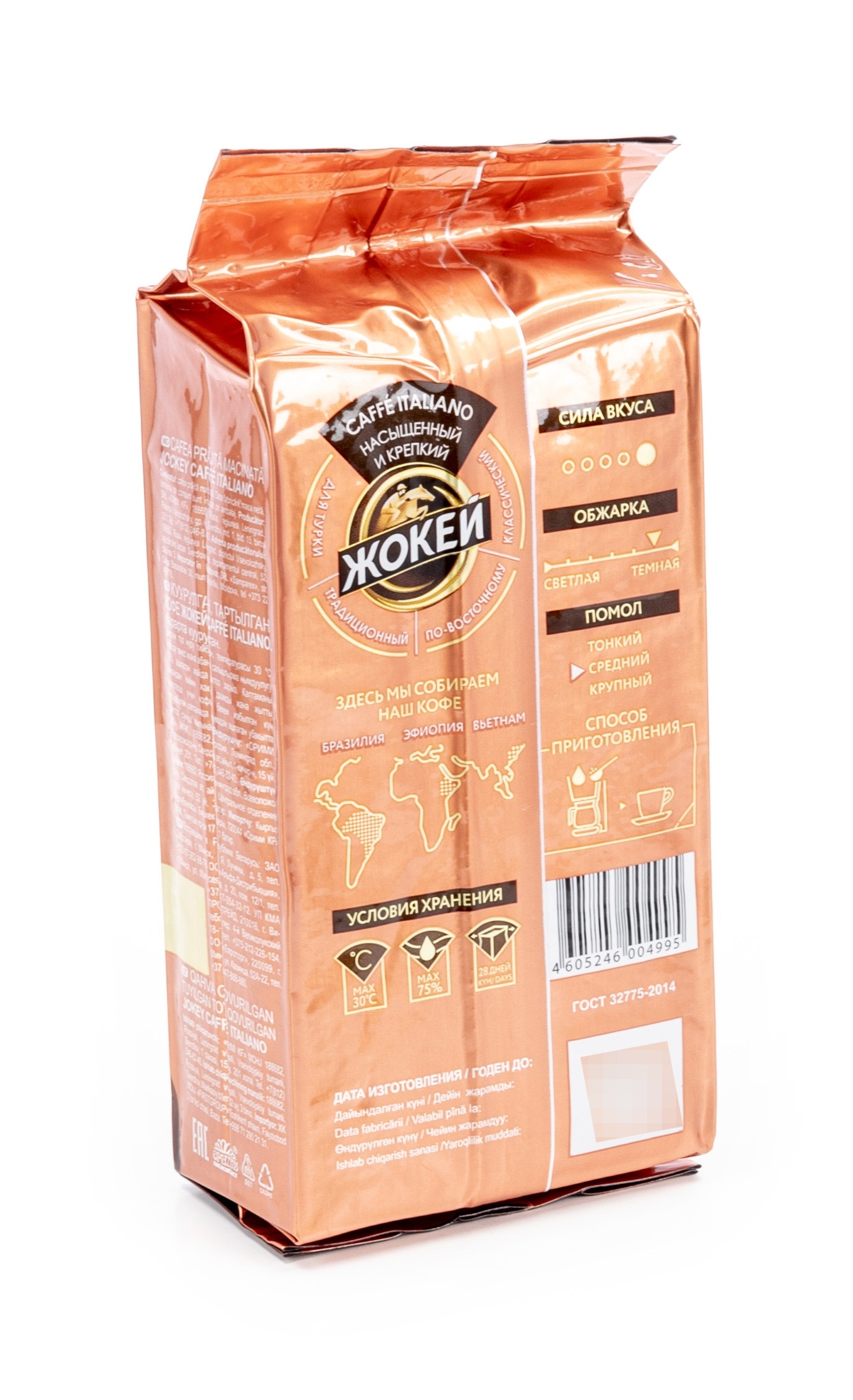 Сложный бленд лучших сортов арабики из Бразилии, Вьетнама, Эфиопии. Кофе, созданный в итальянской традиции, обладает идеально сбалансированным вкусом, ярким и насыщенным ароматом. Точная кофейная композиция, темная итальянская обжарка и особый помол делают Жокей Кафе Итальяно идеальным для любого способа приготовления.