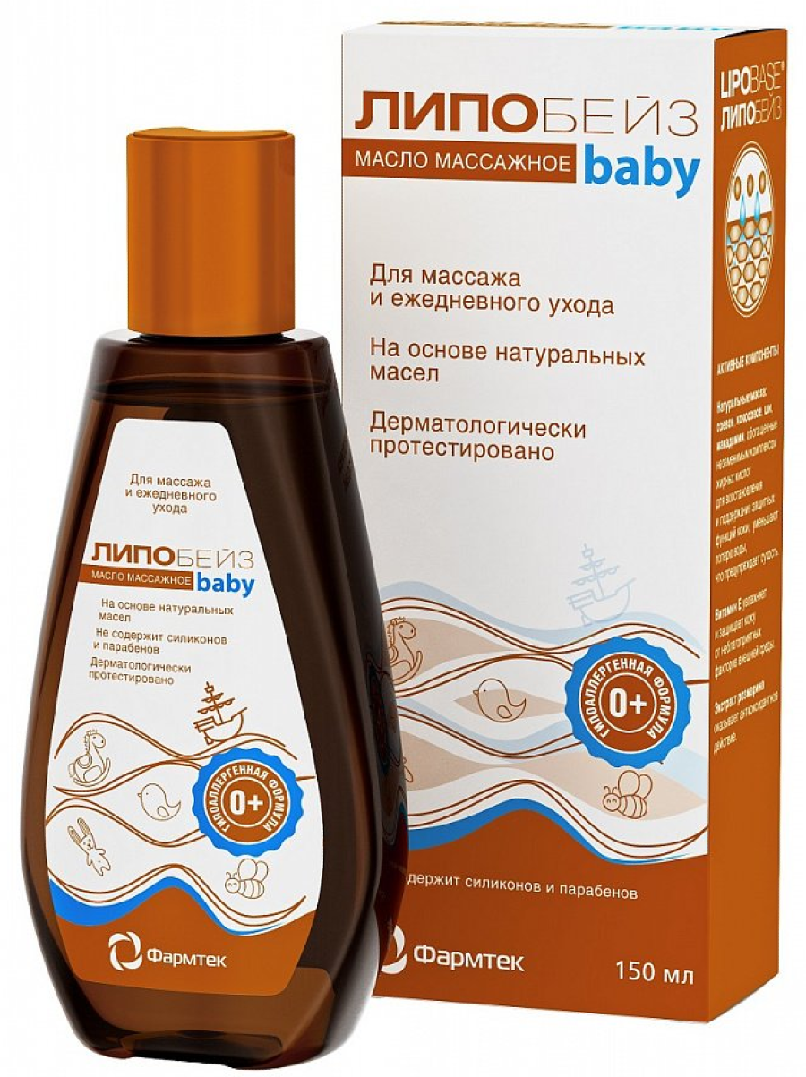 Липобейз Baby масло массажное за счет комплекса натуральных масел идеально питает и успокаивает кожу малыша. Нежная шелковистая текстура без ощущения липкости обеспечивает эластичность и увлажненность кожи.