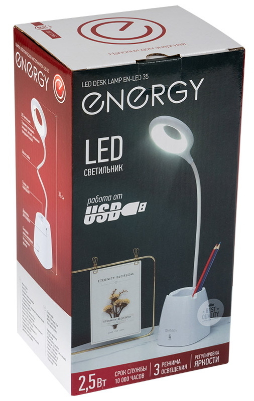 Создайте идеальную атмосферу для работы и отдыха с помощью настольного светильника ENERGY. Аксессуар на подставке легко монтируется на край стола, полку или другую поверхность.