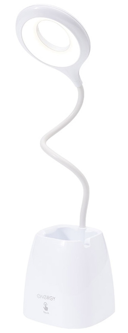 Лампа настольная ENERGY EN-LED 35 366062 высотой 320 мм и максимальной мощностью 2,5 Вт. Лампа имеет 3 режима освещения с регулировкой яркости. Количество LED элементов в лампе составляет 18. Аккумулятор 800мАч. Управление- с помощью сенсорной кнопки. В лампу встроен стакан для ручек и карандашей. В комплекте с лампой USB кабель длиной 1,2 м.