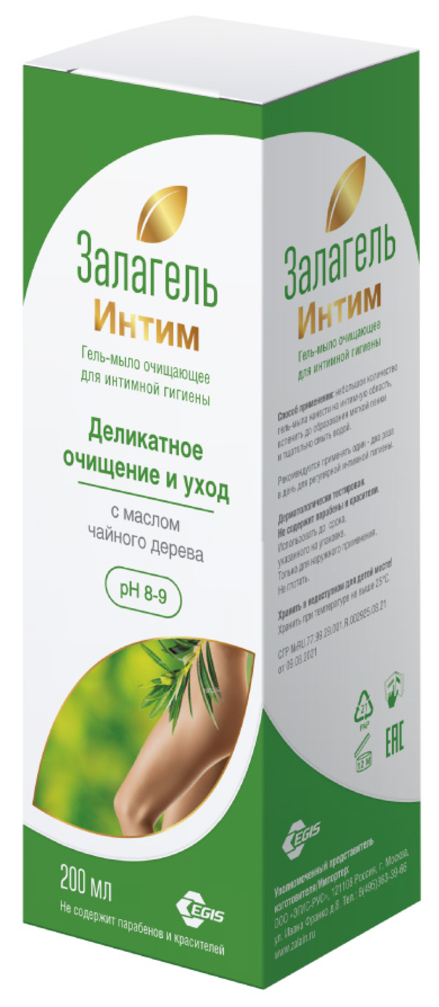 Гель для интимной гигиены Залагель Интим Деликатное очищение и уход с маслом чайного дерева, 200мл
