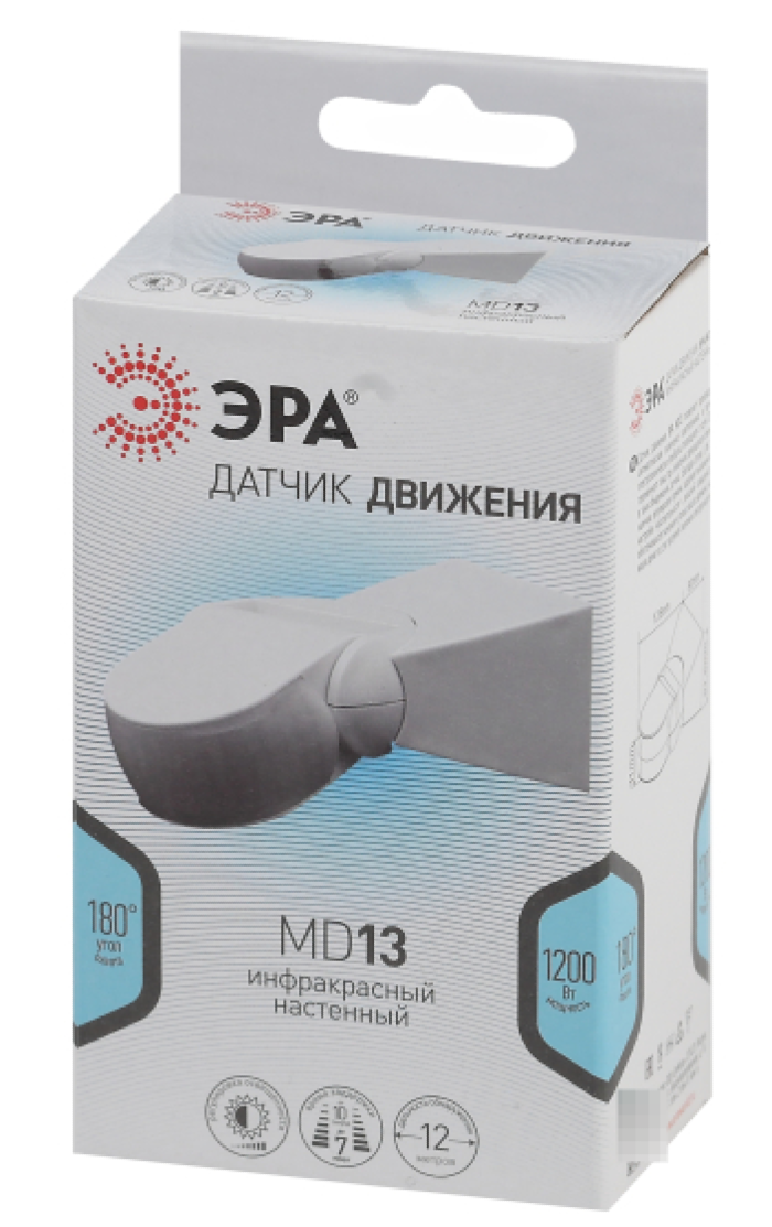 Датчики движения ЭРА MD 013 удовлетворят самые высокие требования к безопасности и надежности. Подарите себе и вашим близким спокойствие и уверенность с датчиками движения ЭРА!