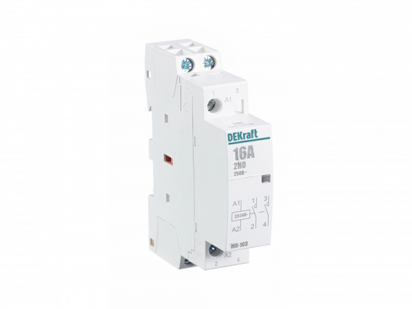 Контактор модульный DEKraft МК-103 применяется в сетях напряжением до 400 В переменного тока для дистанционного управления небольшими нагрузками, требующими большого количества включений / отключений.