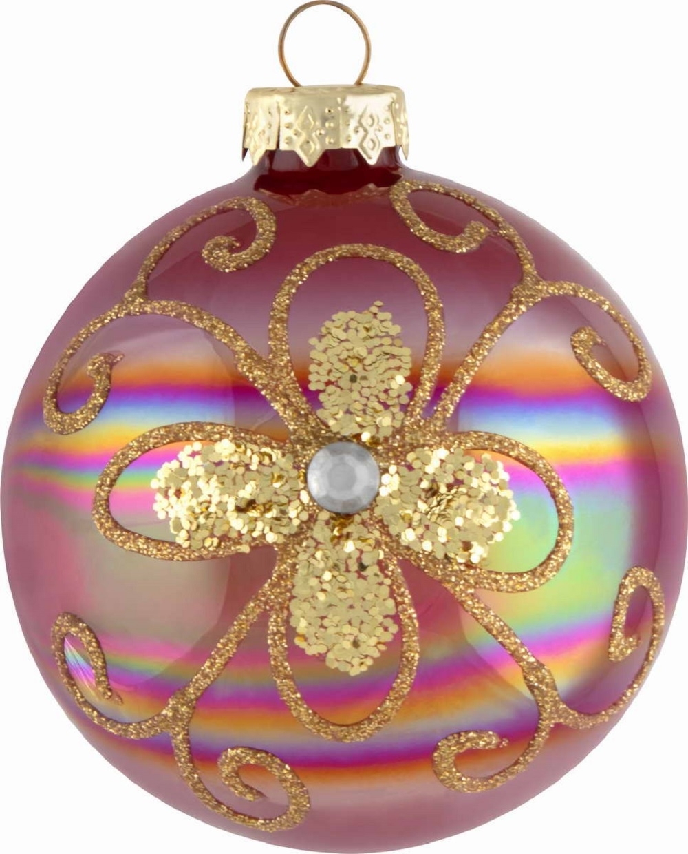 Шар реализуются в индивидуальной упаковке. Количество — 1 шт. Изготовлен из стекла. Цвет — бордовый перламутр. Диаметр — 8 см.