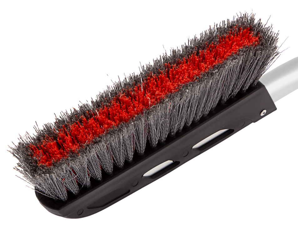 — Деликатная работа — плотная щетина, распушенная на концах, эффективно убирает слой снега, не царапая поверхность кузова.