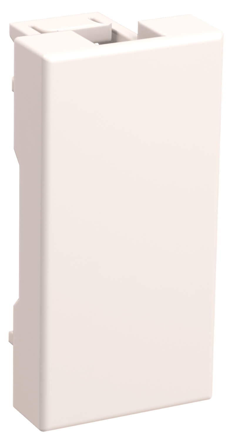 Заглушка предназначена для закрытия неиспользуемой части половины модуля 45×45. Размеры, ВхШхГ, мм: 45×22,5. Цвет — белый.