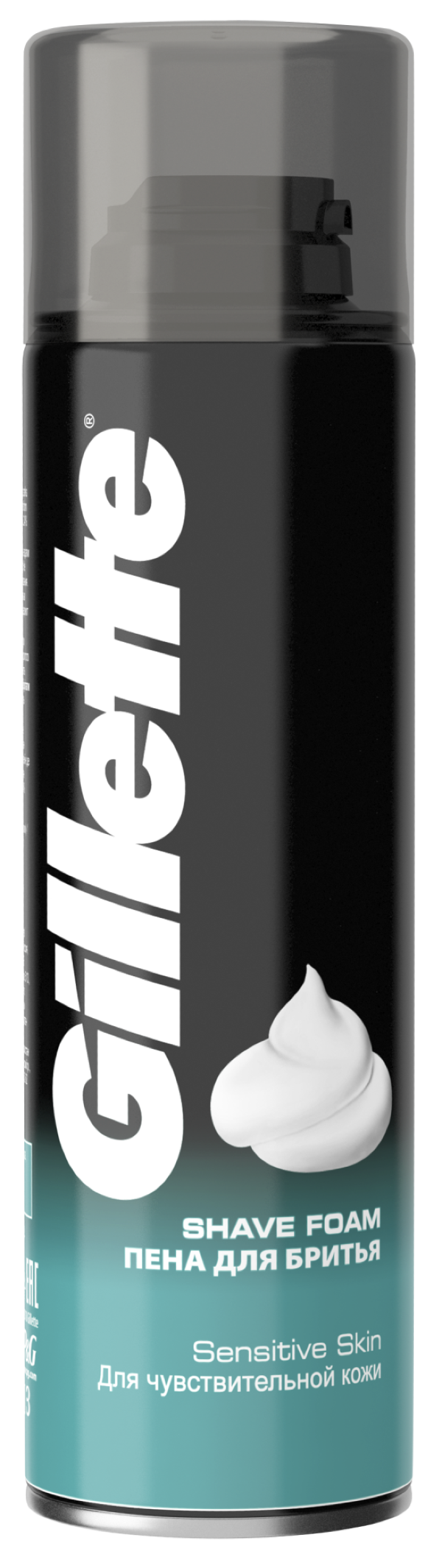 Густая пена для бритья Gillette Sensitive Skin для чувствительной кожи для мужчин обладает легким ароматом, легко наносится и полностью смывается, позволяя мужчинам наслаждаться процедурой бритья, как и много лет назад. Простота. Чистота. Классика. Пена для бритья обладает легким ароматом и подходит для чувствительной кожи. Мгновенно образующаяся пена легко наносится и полностью смывается. Густая пена уменьшает трение.
