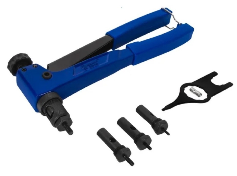 Заклепочник резьбовой предназначен для соединения листовых материалов с помощью резьбовых заклепок из алюминия, латуни и нержавеющей стали. Материал заклепочника — усиленный литой алюминиевый корпус, рукоятки с пластиковыми чехлами обеспечивают удобство в работе.