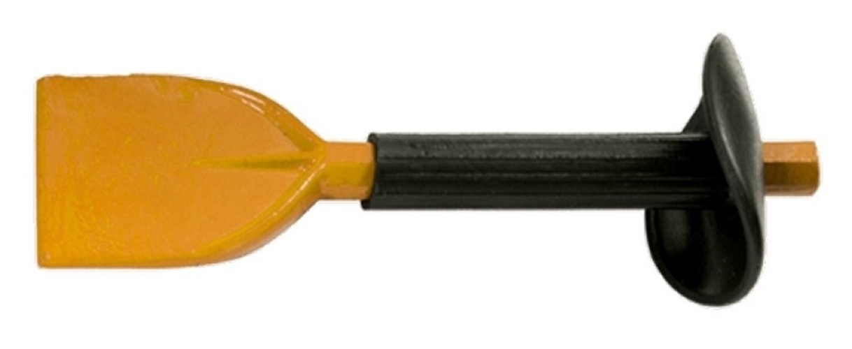 Зубило-конопатка с протектором предназначено для демонтажа кирпичных и бетонных сооружений, а также для накернивания металла в резьбовых соединениях при его залипании. Рабочая часть выполнена из металла и прослужит долгие годы. Обрезиненная рукоятка с фартуком (с протектором) способствует надежному хвату и защищает руки от удара молотком.