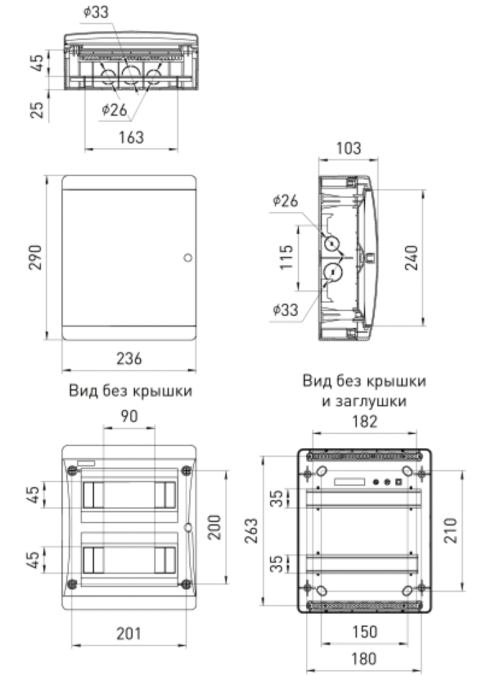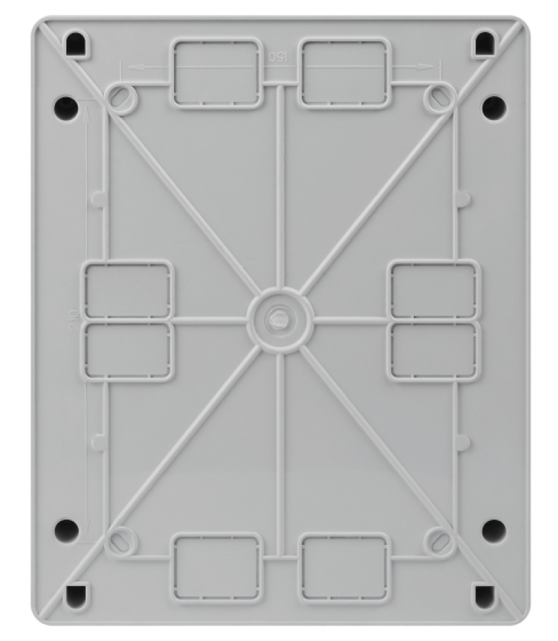 Межосевое расстояние 150 мм между DIN-рейками обеспечивает комфортное размещение модульного оборудования, а невыпадающие пластиковые винты и возможность опломбировки делают корпуса практичными в монтаже.