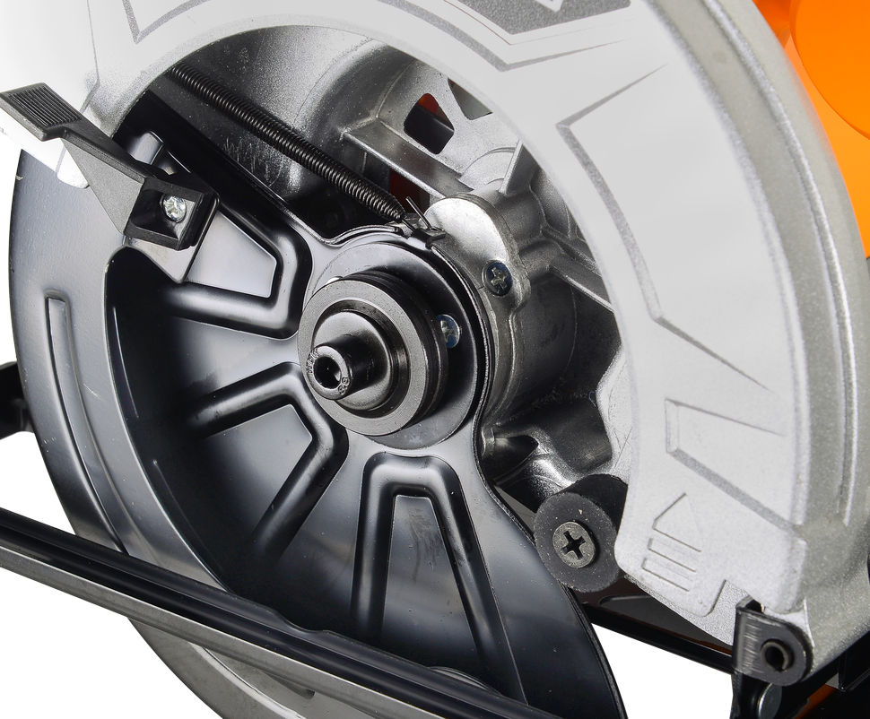 Пильный диск закрыт кожухом для защиты оператора.
