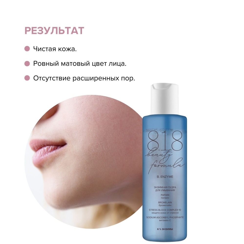 Секрет действия пудры 8.1.8 beauty formula B. ENZYME дарит комплексный уход, преображая кожу без агрессии. Это идеальное решение для тех, кто ценит здоровое сияние и безупречную чистоту.