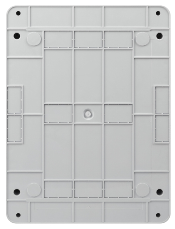 Межосевое расстояние 150 мм между DIN-рейками обеспечивает комфортное размещение модульного оборудования, а невыпадающие пластиковые винты и возможность опломбировки делают корпуса практичными в монтаже.