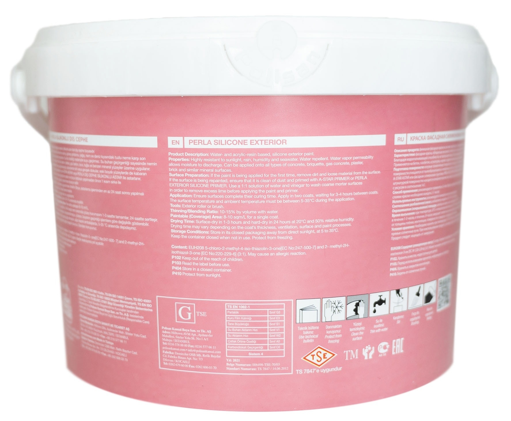 Фасадная краска Polisan / Полисан PERLA SILIKONLU DIS CEPHE база А, щелочестойкая атмосферостойкая силиконовая, белая/матовая, 2.5л / лакокрасочные материалы