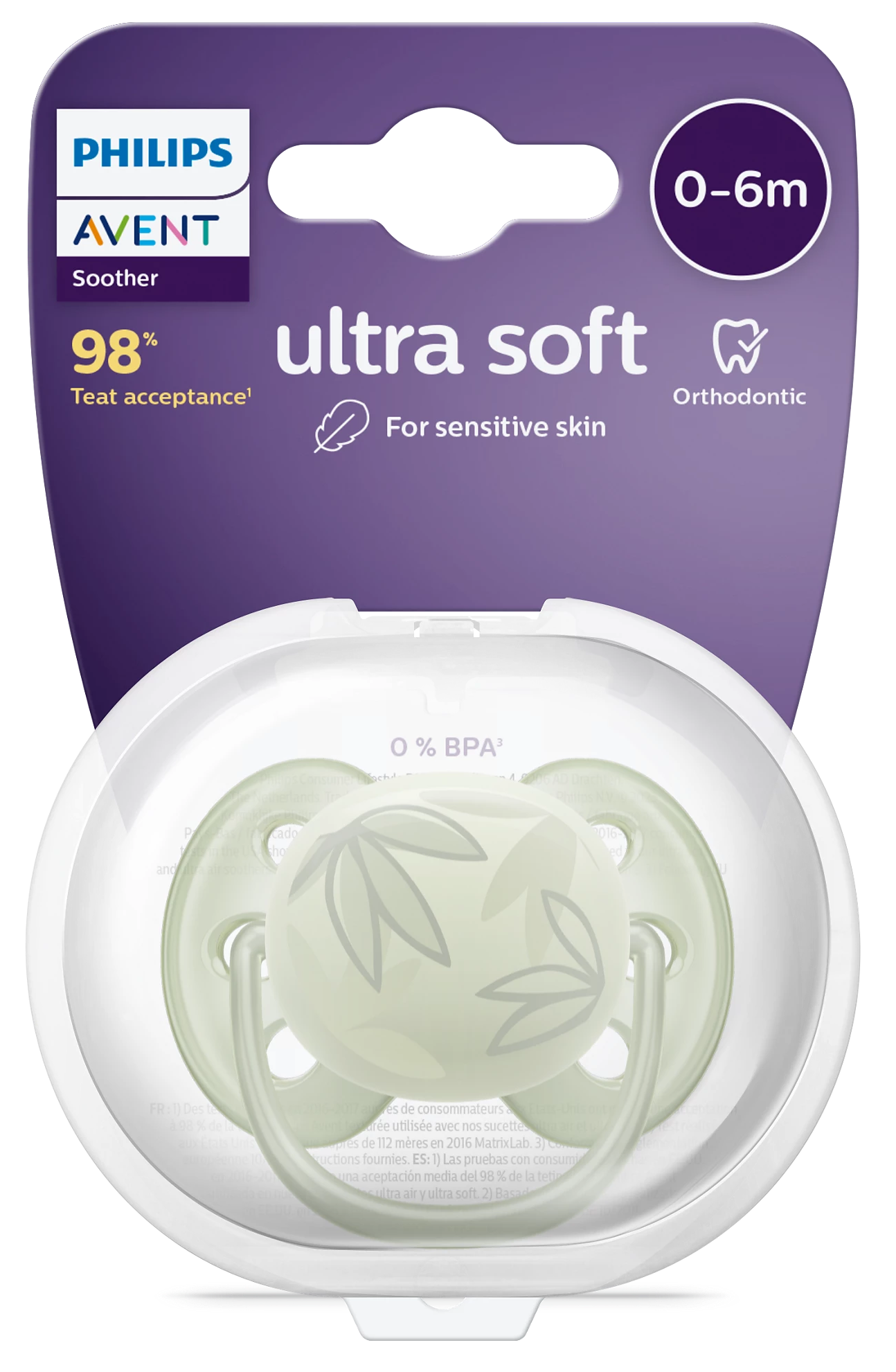 Легкая Соска-пустышка для новорожденных Philips Avent Ultra Soft от 0-6 месяцев силиконовая с нежной текстурой это альтернатива большому пальцу ребенка, сосание которого пагубно сказывается на формировании прикуса. Увеличенные отверстия и легкий нагубник хорошо пропускают воздух, предотвращая раздражение от конденсата на коже. Благодаря футляру ортодонтическую пустышку можно легко стерилизовать в микроволновой печи или промыть под проточной водой.