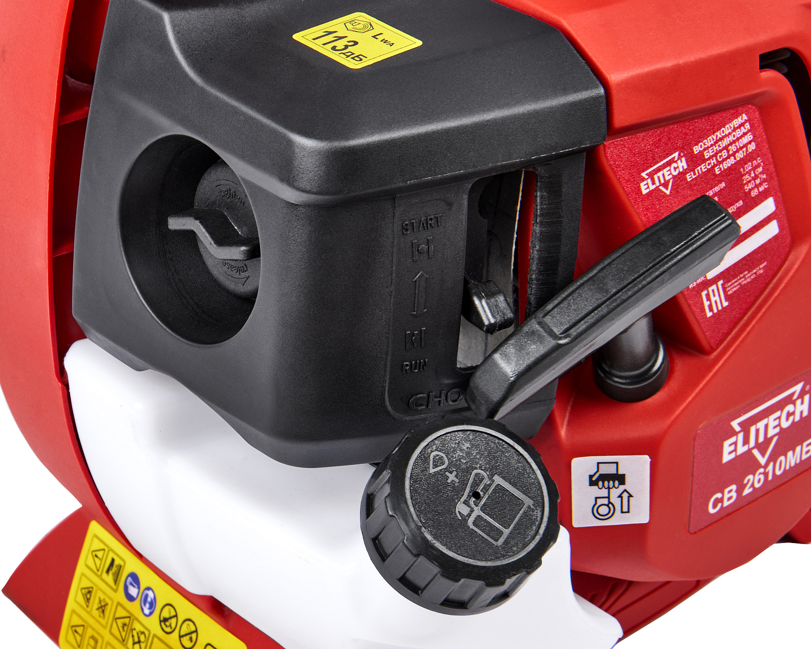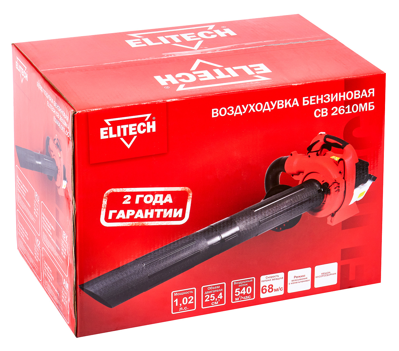 Воздуходувка бензиновая Elitech / Элитек СВ 2610МБ пылесос, с двухтактным двигателем, цвет красный, 540м³/ч, 68м/с, бак 0.45л, 0.75кВт / садовая техника