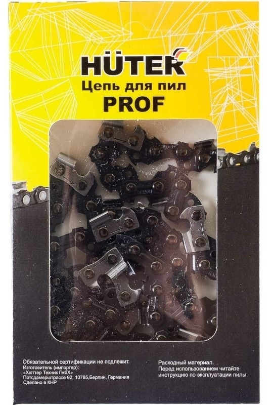 Цепь Huter предназначена для использования с бензопилами. Профессиональный режущий инструмент обладает высокой производительностью. Режущие зубья изготовлены из специальной стали. В основном применяется для бытовых работ: подрезки сучьев в саду, небольшого ремонта, пиления дров для камина. Не следует забывать, что для нормальной работы цепи и увеличения срока эксплуатации ее необходимо постоянно смазывать.