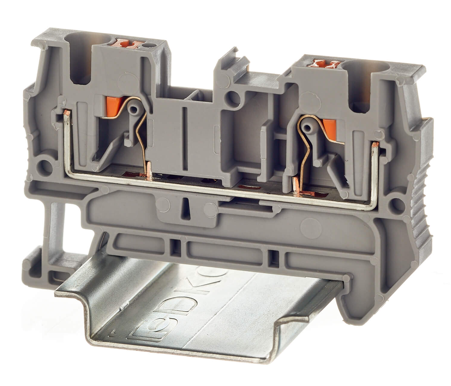 Проходная клемма с зажимом Push-in предназначена для соединения двух проводников, а за счет кнопки-толкателя обеспечивается защита от ошибок при монтаже и случайного прикосновения.