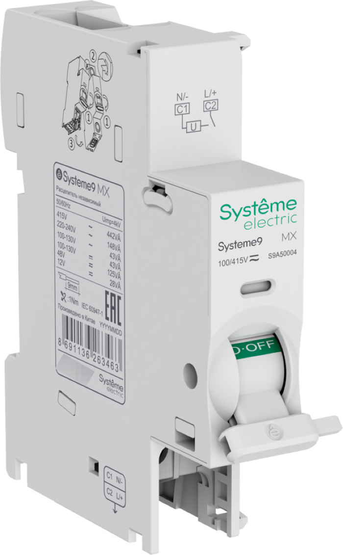 Расцепитель Systeme Electric / Систем Электрик Systeme9 MX независимый на DIN-рейку, из пластика, 72х18х85мм, 100-415В, max сечение 6мм², IP20 / электрика