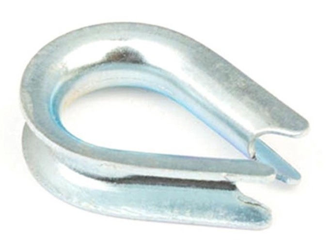 Применение: для изготовления петель на концах стальных тросов и синтетических канатов. Предохраняет канат от перетирания, делает петлю более плавной. Широко используется в грузоподъемных устройствах. Размер определяется по диаметру применяемого каната. Делает петлю более плавной, предотвращает перетирание троса. Применяется при такелажных работах, монтажных работах, креплении к канату крюков, монтажных блоков.