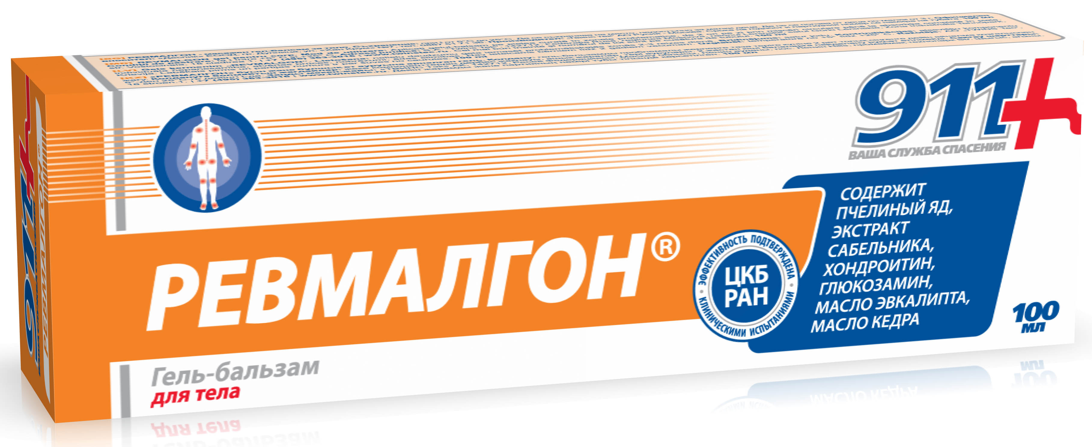 911 Ревмалгон Гель-бальзам для тела с пчелиным ядом, 100мл / уходовая косметика
