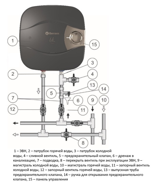 Водонагреватель накопительный электрический Thermex выделяется своими техническими характеристиками. Объем его бака составляет 10 л. Нагрев воды в бойлере до +75°С. Потребляемая мощность — 1.5 кВт. Напряжение — 220 В. Пылевлагозащита — IPX4.
