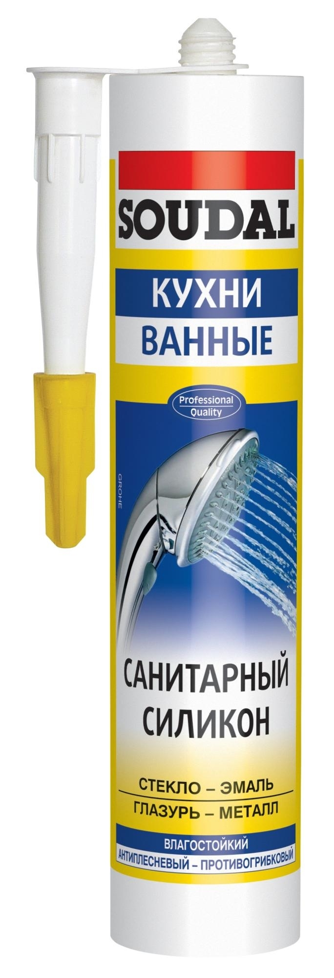 Герметик силиконовый Soudal / Судал Кухни и ванные санитарный, белый, 300мл / строительство и ремонт