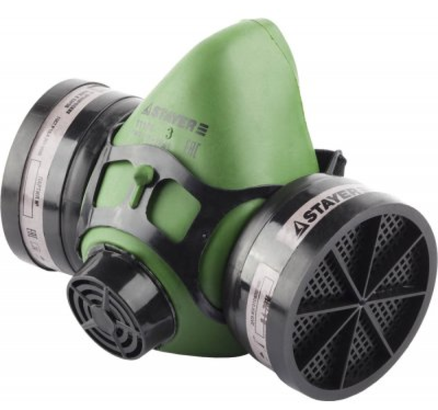 Полумаски (респираторы) STAYER в комплекте со сменными противогазовыми фильтрами марки «А1» служит для защиты от органических газов и паров с температурой кипения выше 65оС (бензин, керосин, ацетон).