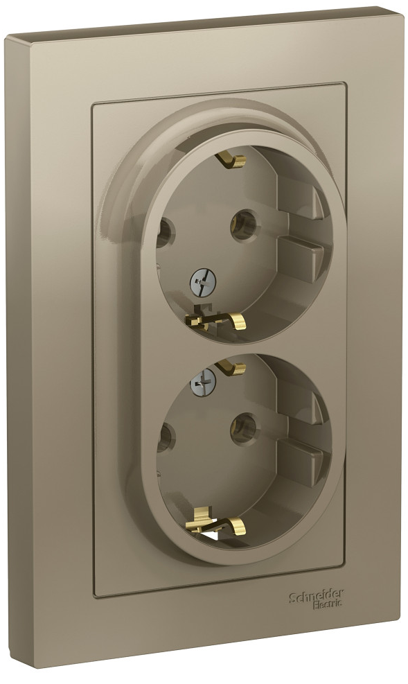 Двухместная розетка выполнена в приятном цвете шампань, поверхность же штепсельной розетки Systeme Electric AtlasDesign ATN000524 — матовая (EV000146).