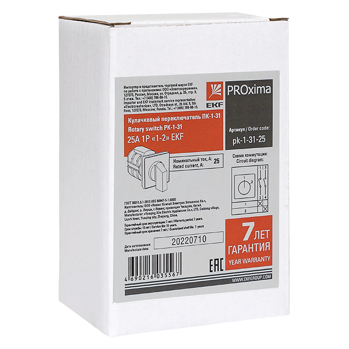 Переключатель кулачковый EKF PROxima ПК-1-31 реализуется в индивидуальной упаковке.