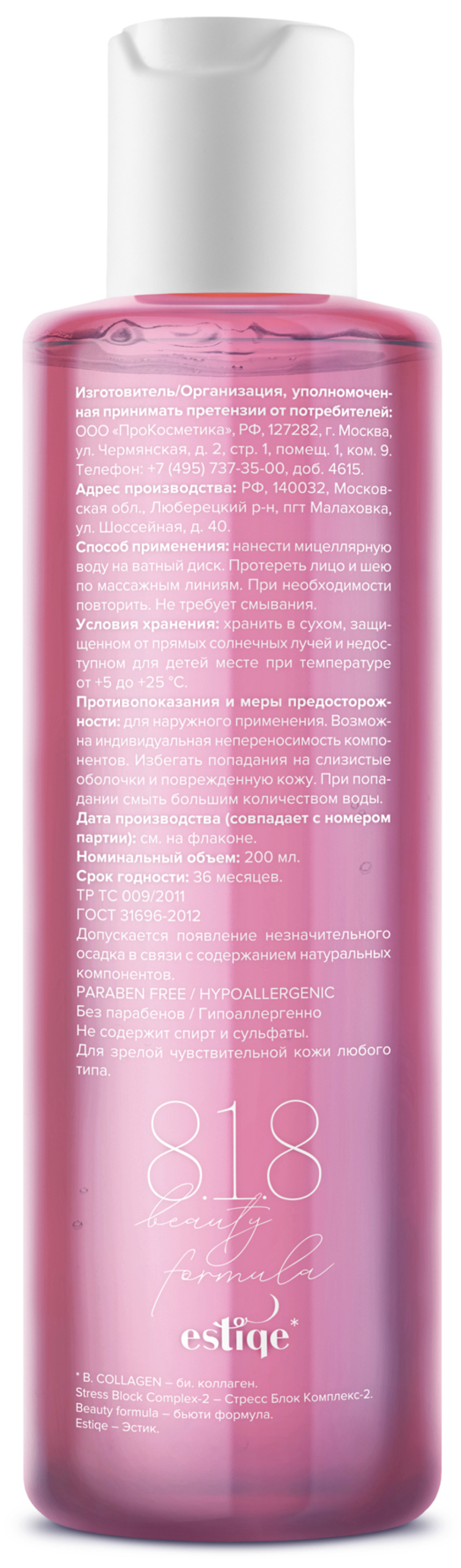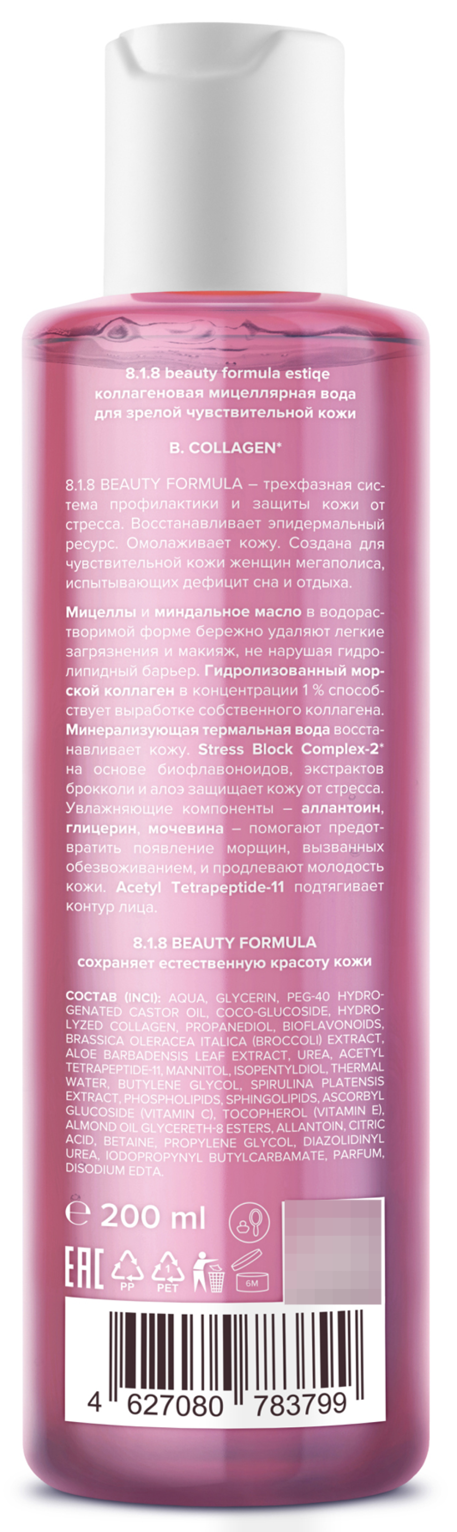 8.1.8 beauty formula B. Collagen Мицеллярная вода для лица 200 мл. подойдет обладательницам зрелой чувствительной кожи.